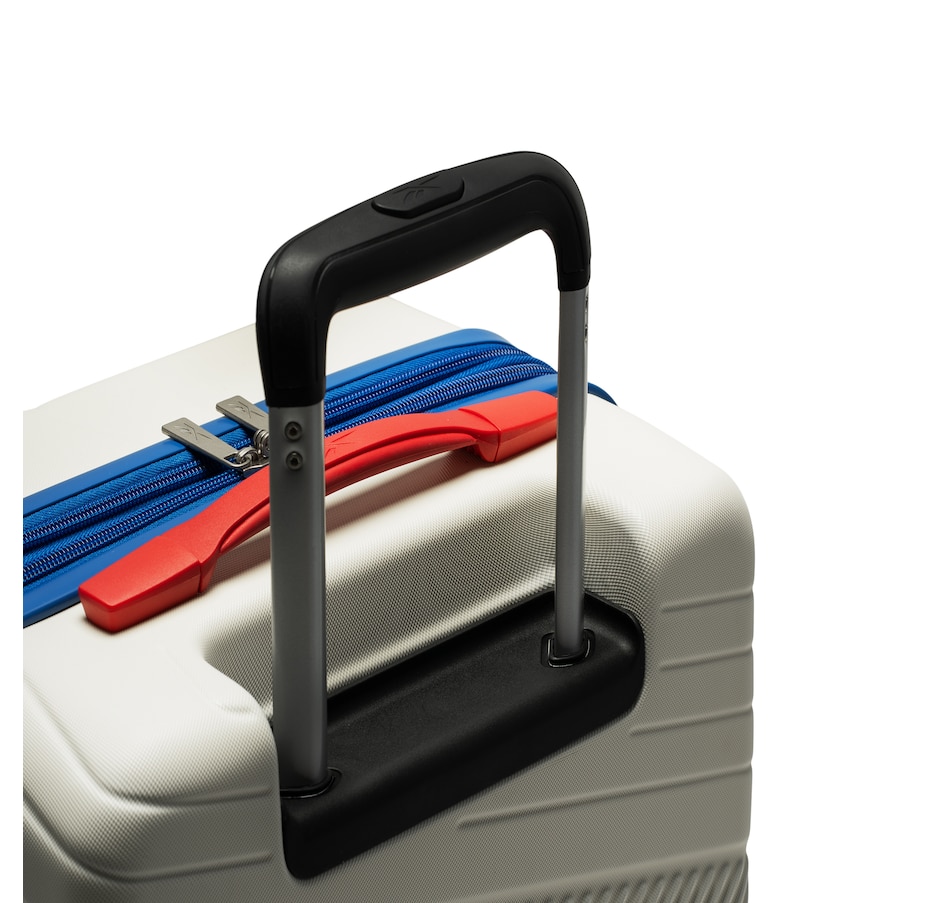 Color matching components such as top handle, part of wheels, side feets and zipper puller