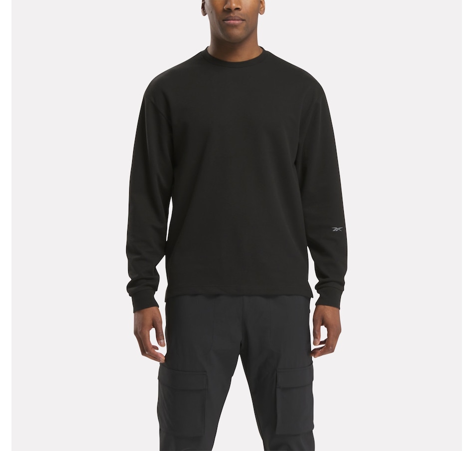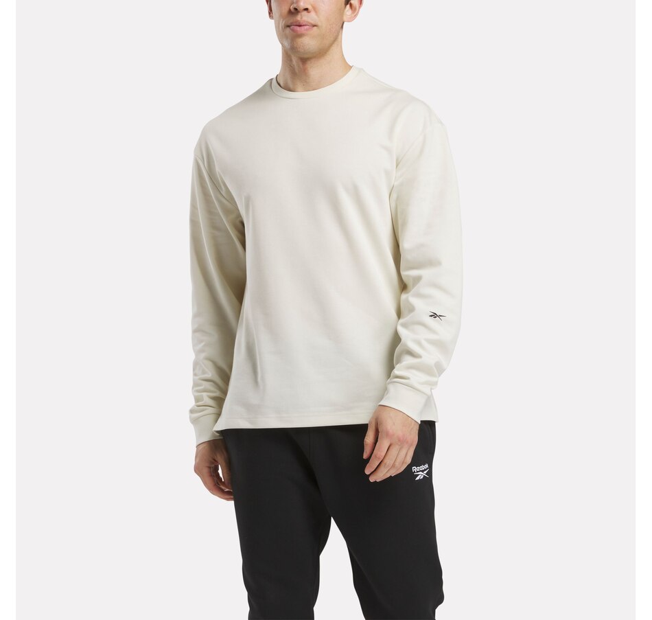 This men's Reebok t-shirt combines the comfort of cotton with the performance benefits of polyester. The simple silhouette and clean drape give it a sophisticated look. This item features Reebok's most versatile fit, with standard room through the chest and shoulders, and it falls straight down the body.