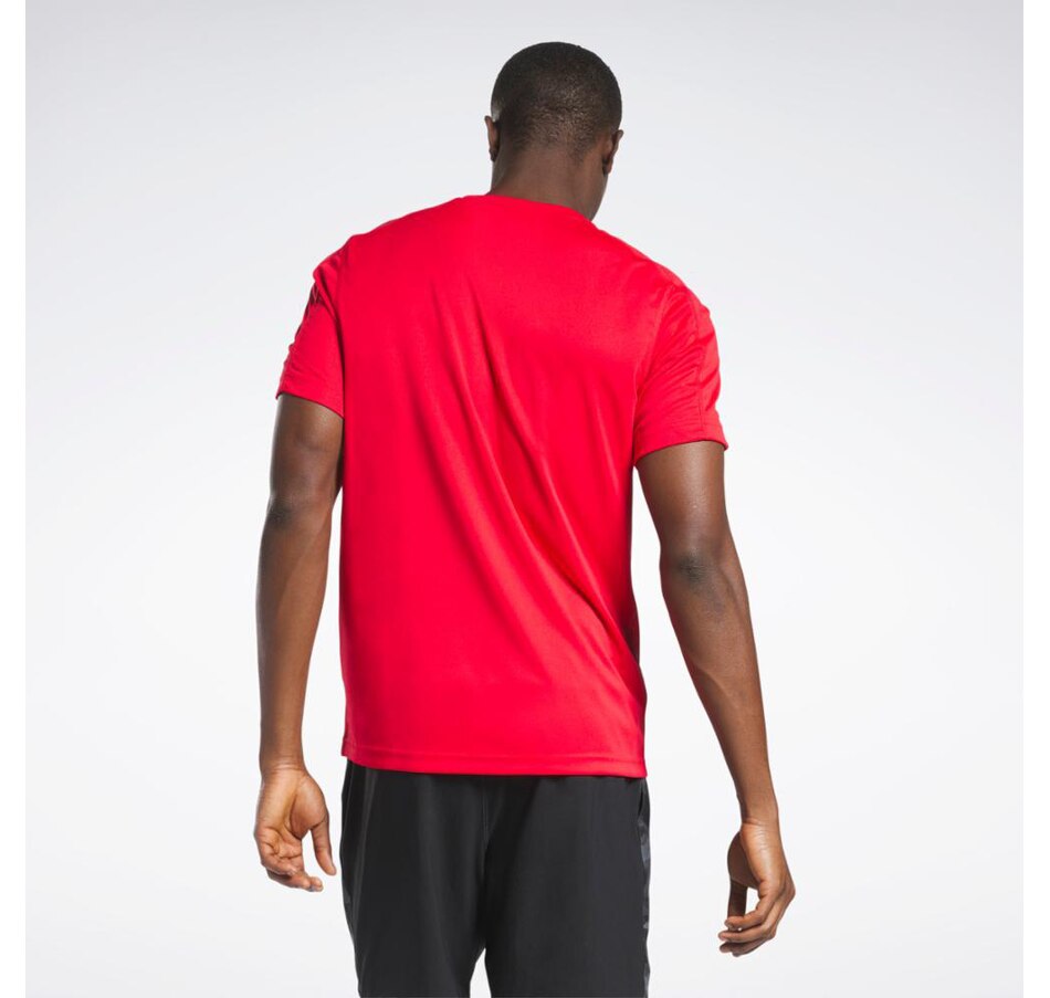 This men's training t-shirt helps you stay comfortable through HIIT workouts and core circuits. Its Speedwick fabric moves sweat away from the body to help you stay cool and dry through your final set, and its subtle graphics help to signal your Reebok pride.