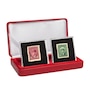 Historic Five-Cent Coins and WWII Ration Token in Case