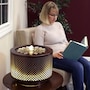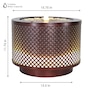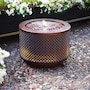 Meticulously crafted with a keen eye for detail, this delightful electric bubbling indoor/outdoor cylinder-shaped metal water fountain boasts a robust iron construction, thoughtfully adorned with a sleek powder-coated finish. This combination of sturdiness and style ensures that the garden fountain not only stands the test of time but also graces any space with an air of contemporary sophistication. The artistic charm of geometric cutouts adds a touch of uniqueness to this fountain's design, while the gentle radiance of LED lights bathes it in a soft, welcoming glow, making it a captivating focal point, whether it's the bright light of day or the tranquil darkness of night. The adjustable-flow-rate pump, granting the power to tailor the water's pace to any preference, ensuring that it's not just a source of aesthetic pleasure but a soothing retreat. Whether placed indoors to elevate the living area or outdoors to enhance a garden oasis, this fountain effortlessly harmonizes with any environment, introducing tranquility and a hint of refinement to any surroundings.