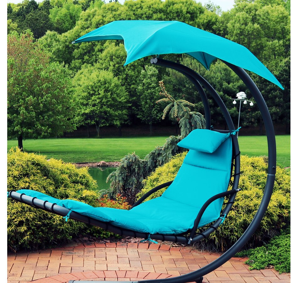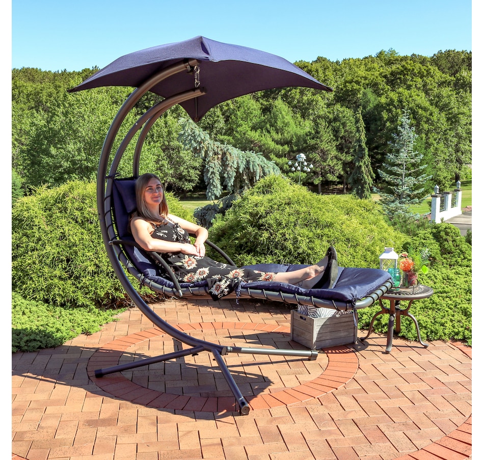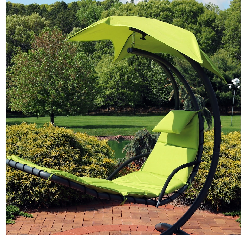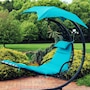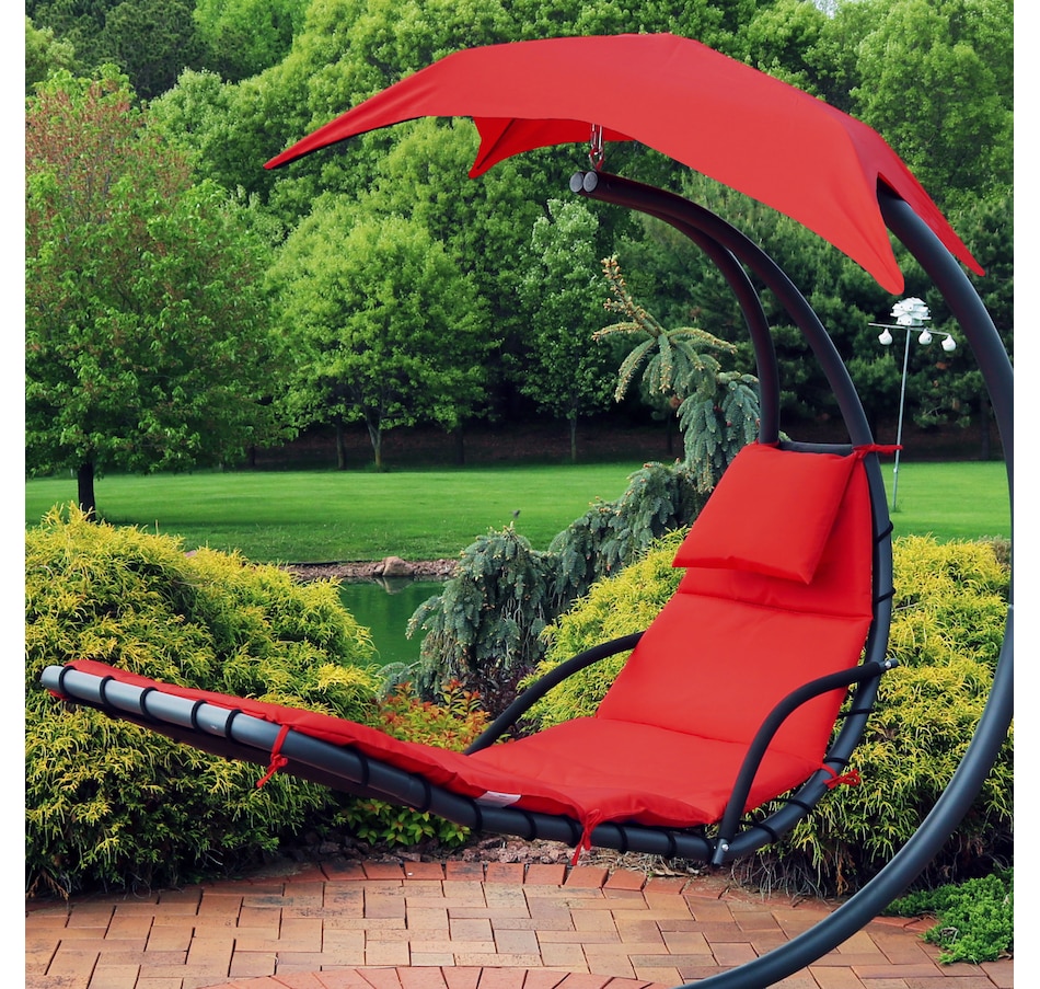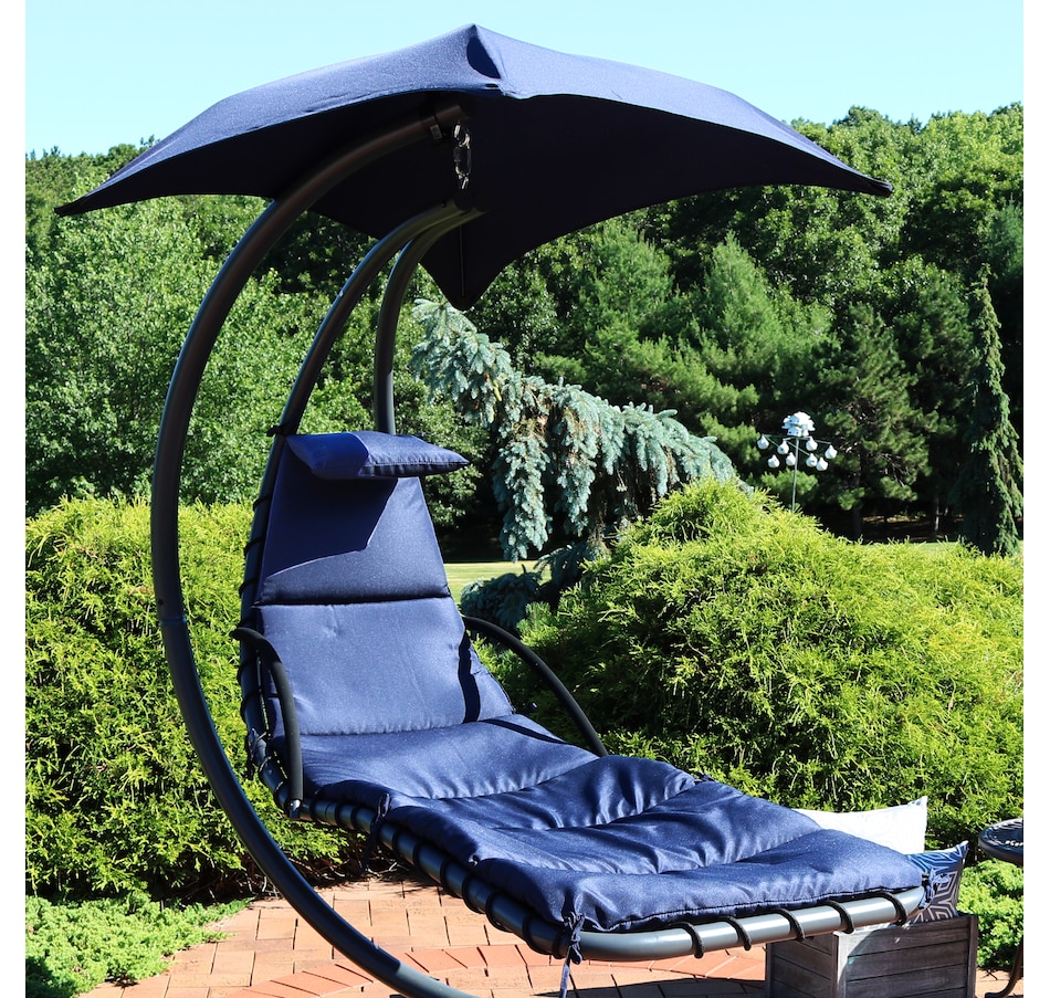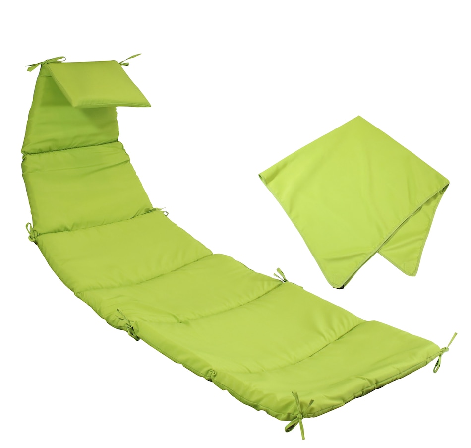 Give an old hanging lounge chair new life with this replacement cushion and umbrella cover set. The cushion and umbrella fabric is resilient to withstand the outdoor elements and easy to clean and maintain. The cushion provides a comfortable place to lounge and relax on a hanging lounge chair frame. The umbrella cover is designed to be used with hanging lounge canopies that have a 4-spoke umbrella, as it has four places for the spokes to stay in place in each corner of the fabric. This set is great for replacing an old, worn cushion, or simply switching up the colors for a change. Available in many colors, there are options to give any outdoor patio a nice, bright pop of color, bring a complementary color to the existing decor aesthetic, or simply replace an old but loved cushions set.