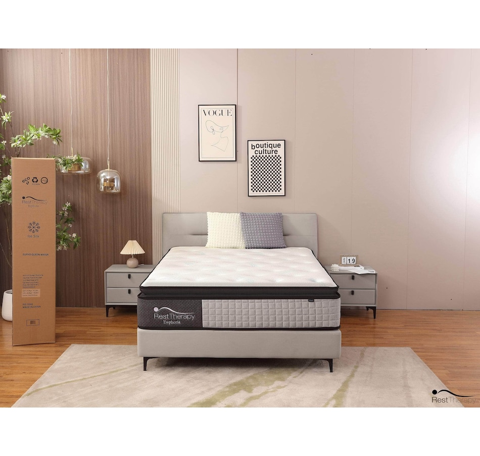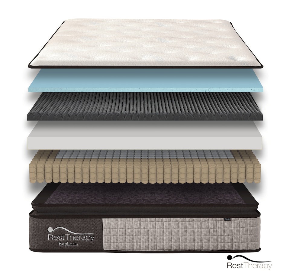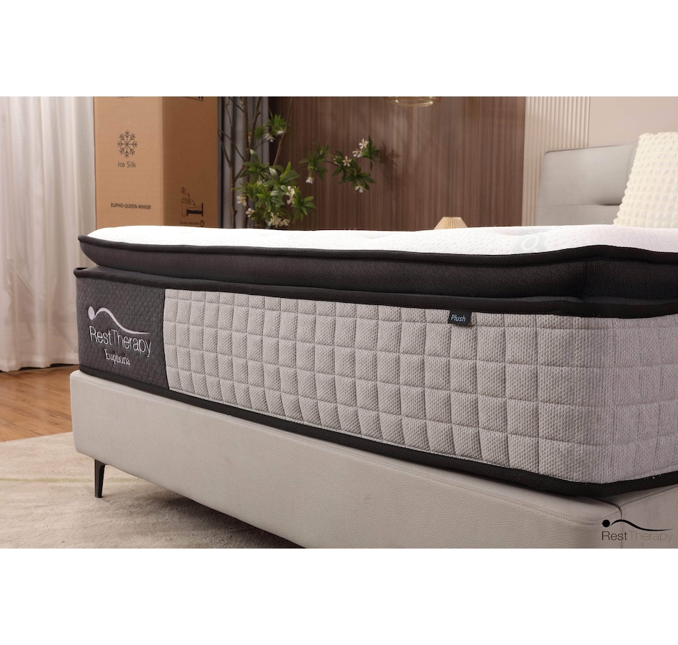 The Euphoria includes a luxuriously padded quilted top with a plush pillow top design, wrapped in a cooling ice silk cover, soft and luxurious to the touch, with natural moisture management to keep you cool and dry on hot summer nights. The ice silk cover is cooler to the touch than bamboo covers.