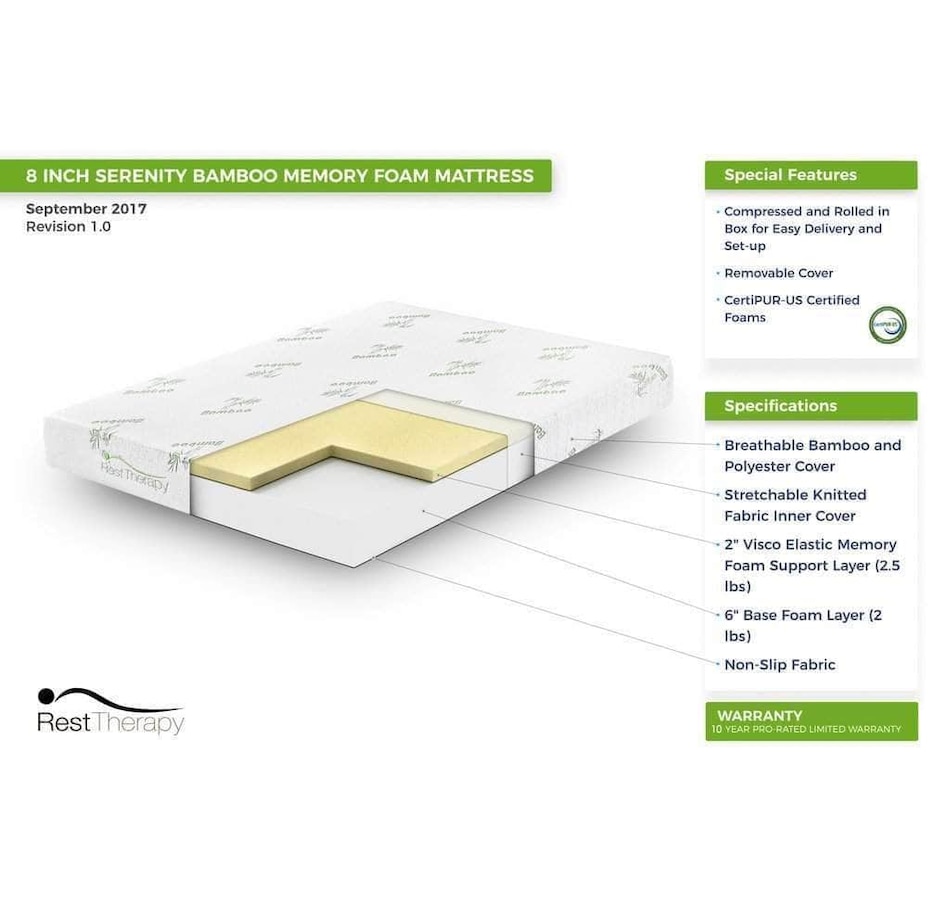 8 Inch Serenity Bamboo Memory Foam Mattress