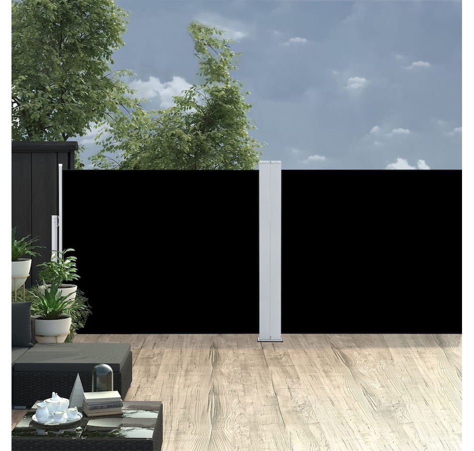 Our garden awning, featuring a large screen, is an effective way to protect yourself from constant wind and low sun while providing your privacy. The simple yet elegant design makes it an ideal addition to your garden, patio, balcony, etc. The privacy screen has an automatic roll-up function and its width is adjustable up to 1000 cm. The outdoor screen is made of UV-, tear- and water-resistant polyester with a PU coating. Delivery also includes mounting accessories and 2 posts.