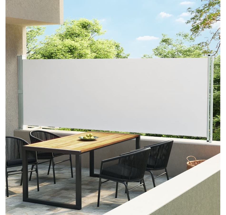 This simple and elegant side awning creates a cozy little corner while giving you the privacy you need on your terrace or balcony. This can also help protect people from wind and low sun. The screen is made of UV, water and tear resistant polyester. The cassette is installed on a sturdy steel base in a vertical position, and the garden screen can be pulled straight out. The awning has an automatic roll-up function. Delivery also includes mounting accessories.