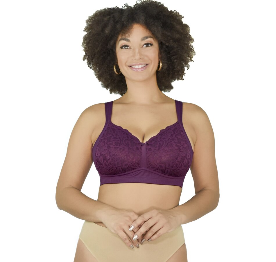 • Molded cup styling, padded straps, adjustable back straps, lace overlay on cups, elastic band under bust
