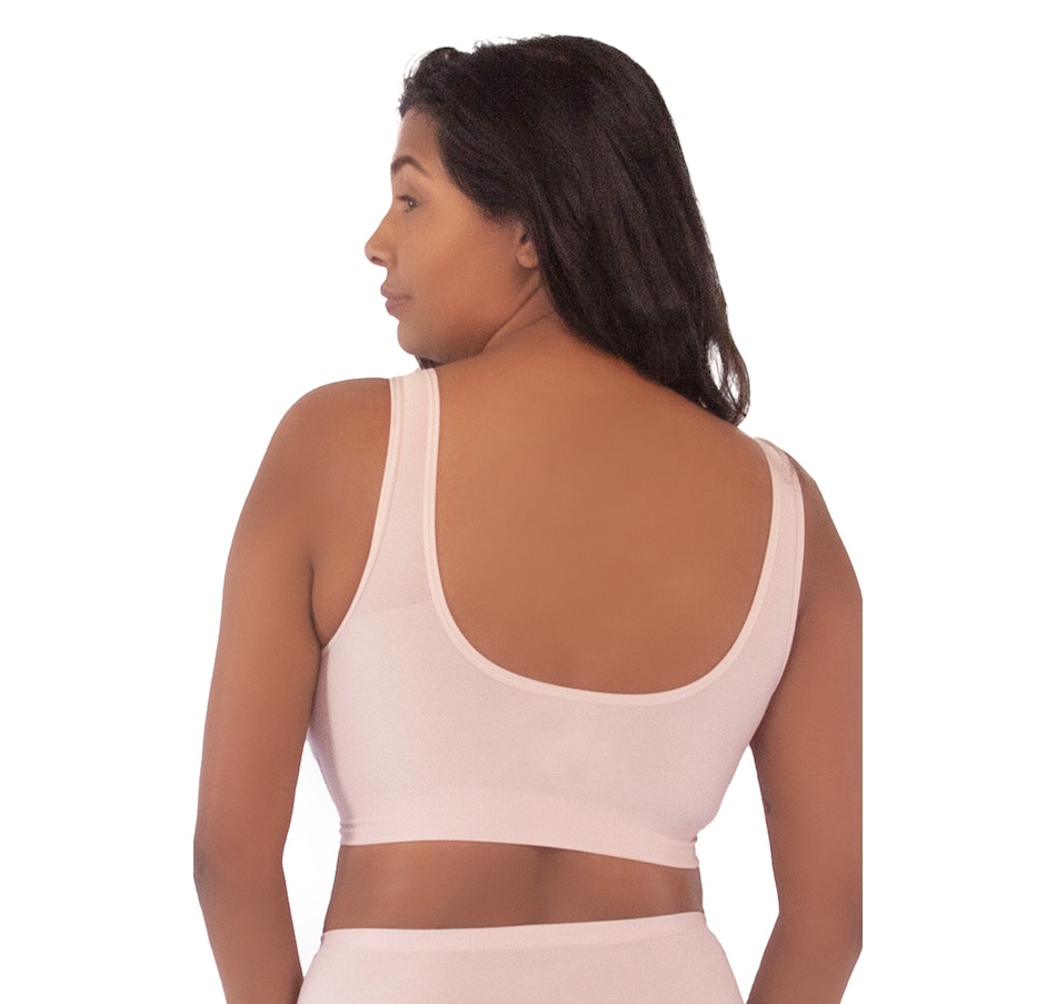 • Seamless stretch fabrication, satin jacquard knitted dot detail fabric, wide non-adjustable straps, wide smoothing back, removable pads dyed to match, centre front ruching bust support, knit elastic band under bust, lined