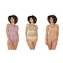 Breathe a sigh of relief in this leisure bra by Rhonda Shear. This essential three-pack features a soft stretch fabrication that gently hugs your frame with princess seams to flatter your silhouette. It also features printed mesh details at the front, an elastic band at the hem, a flat smoothing back and wide, non-adjustable straps.