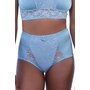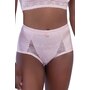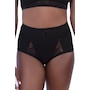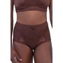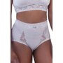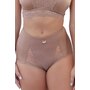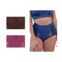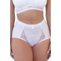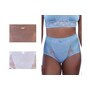 • 4-way stretch fabrication with sheen, front lace panel, brief styling, ruched seat for enhancement, brushed back picot trimmed elastic at waist, poly gusset