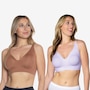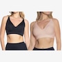 You'll embrace style, value and comfort all at once wearing this gel bra two-pack from Rhonda Shear. Each is designed with ultra soft stretch fabrication, "gel" stripes below the cups for extra support, adjustable straps, and dyed-to-match removable pads.