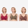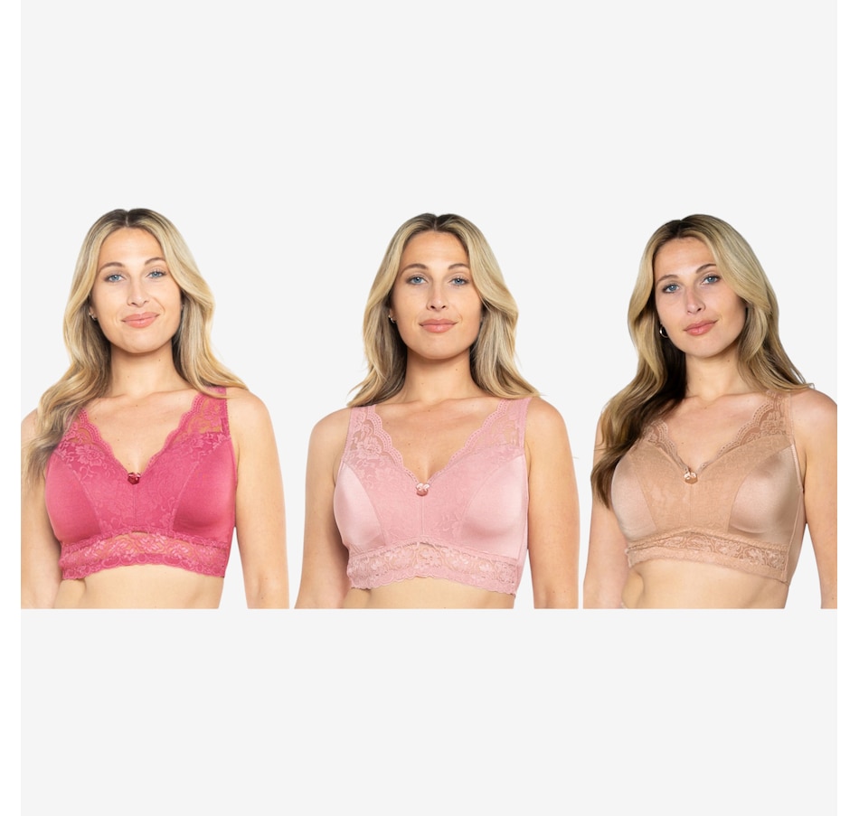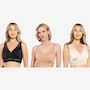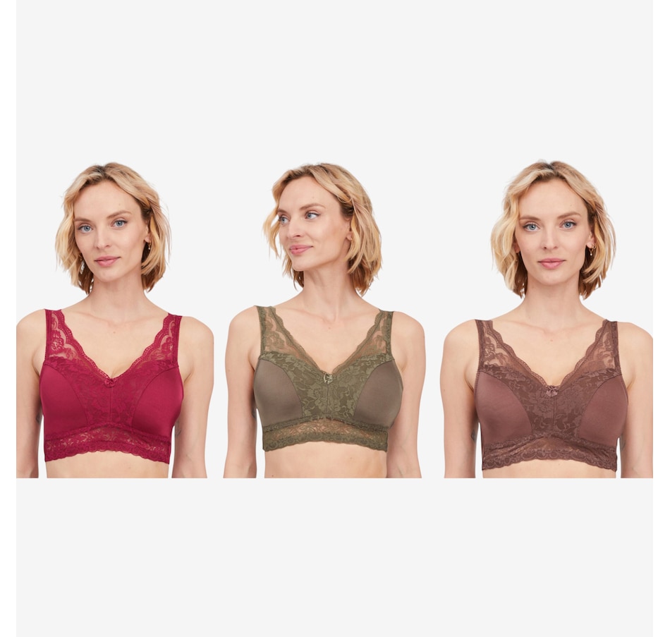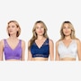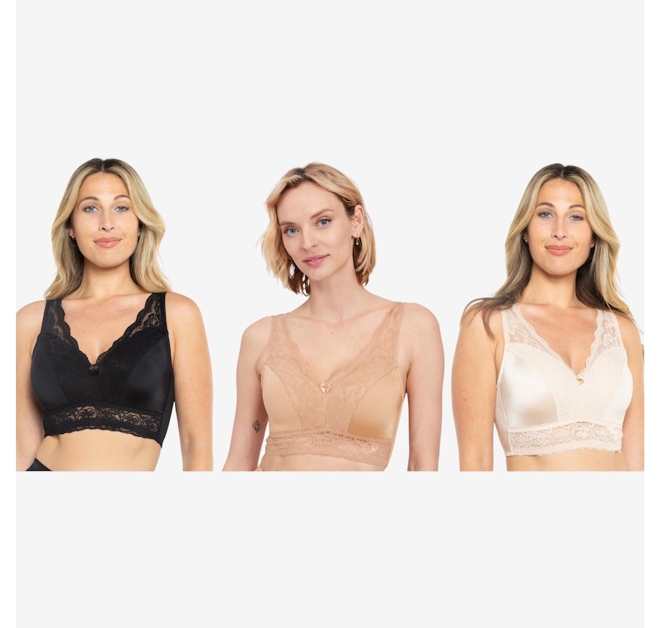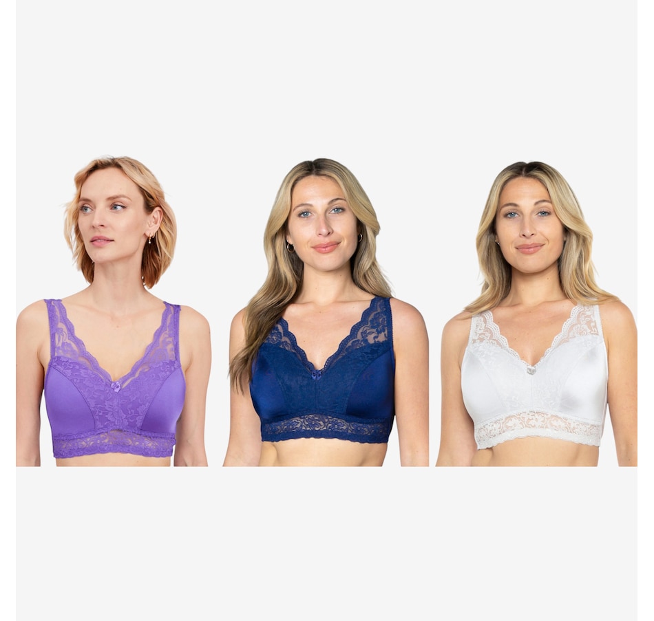 • No underwire; wide back with no back closure; wide, non-adjustable straps; medium support
