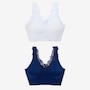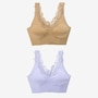 Available in a trio of beautiful colour combinations, you'll embrace style, comfort, and value wearing this seamless bra with lace inset two-pack from Rhonda Shear.