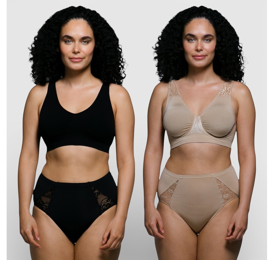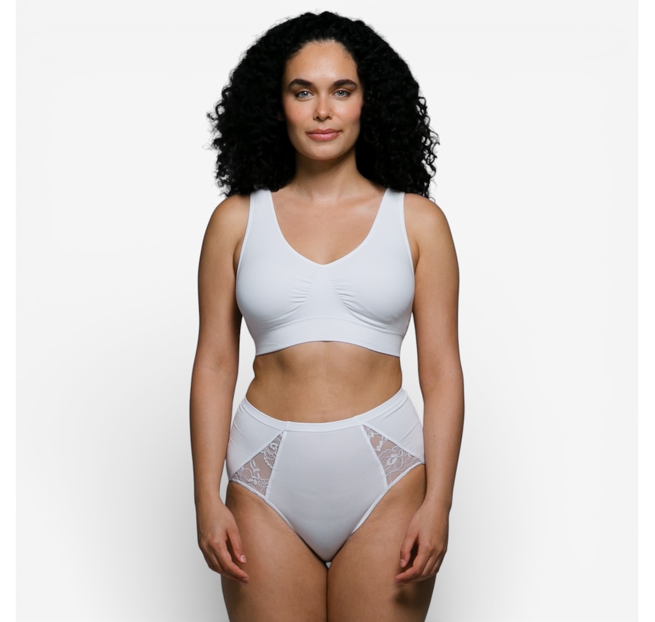 Enjoy all‑day comfort with a touch of feminine elegance in the Rhonda Shear seamless panties with lace detail two‑pack. Designed with a flattering mid‑rise fit that sits just under the belly button, these panties feature a French‑cut leg opening that elongates the silhouette while offering easy, breathable movement. The seamless four‑way stretch fabric provides light control and a smooth, line‑free finish under any outfit, while the wide gusset means comfort you can count on. Delicate lace details and chic lace side cutouts elevate this everyday essential with a stylish, feminine touch. Soft, stretchy, and beautifully designed, this two‑pack delivers comfort, confidence, and a little bit of luxury.