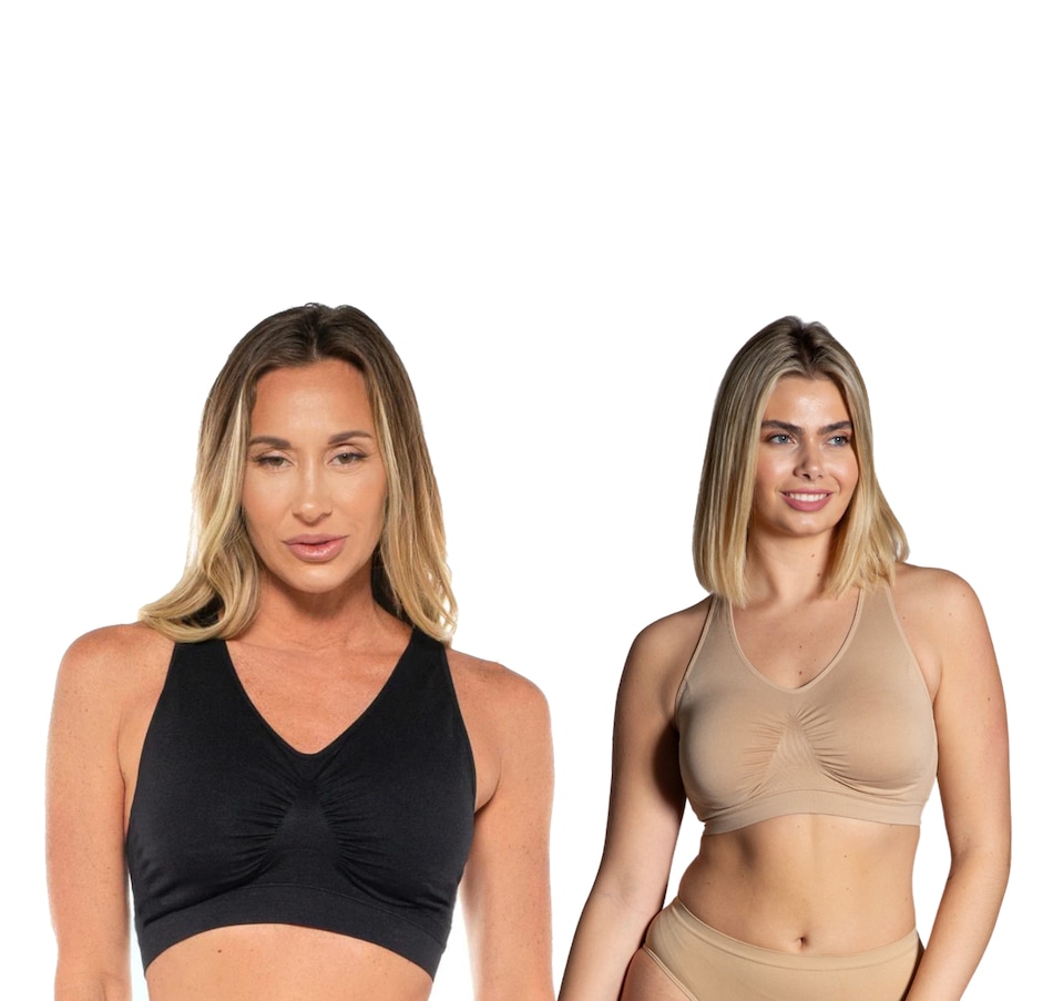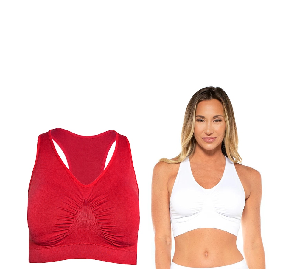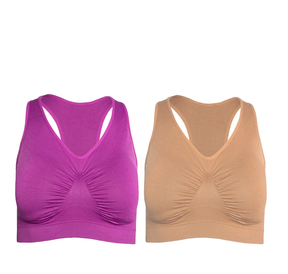 Embrace style, comfort and value all at once with this two-pack of fabulous seamless racerback bras from Rhonda Shear.