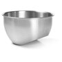 Made of stainless steel, Ricardo's multi purpose colander is perfect for soaking and rinsing quinoa, rice, dried beans, lentils, fresh herbs, fruits, vegetables and more. Place the bowl on its flat base to soak and rinse a large variety of food, and tilt the bowl forward to drain water through the integrated colander! Small holes retain contents inside, allowing only water to drain through.