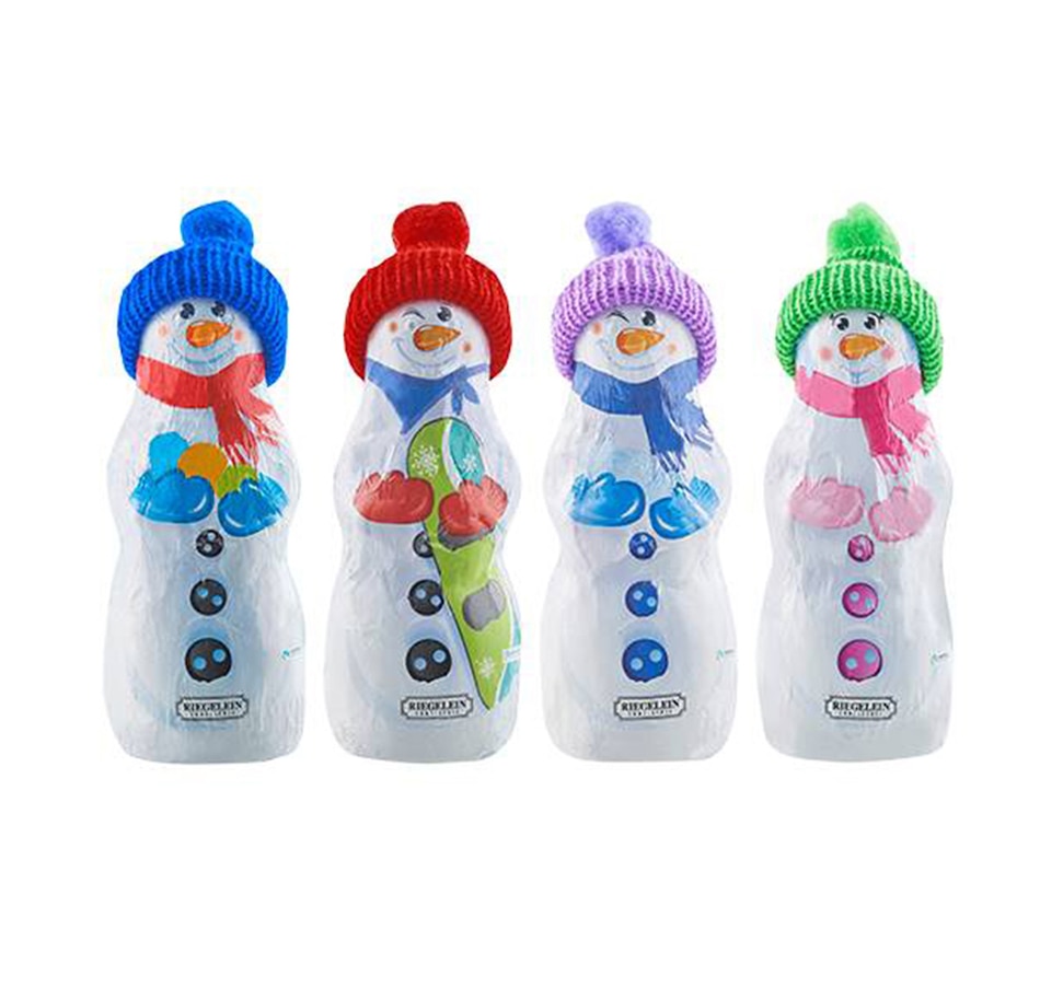 Riegelein Milk Chocolate Snowman with a Real Knitted Hat- Assorted 4-pack- 125g