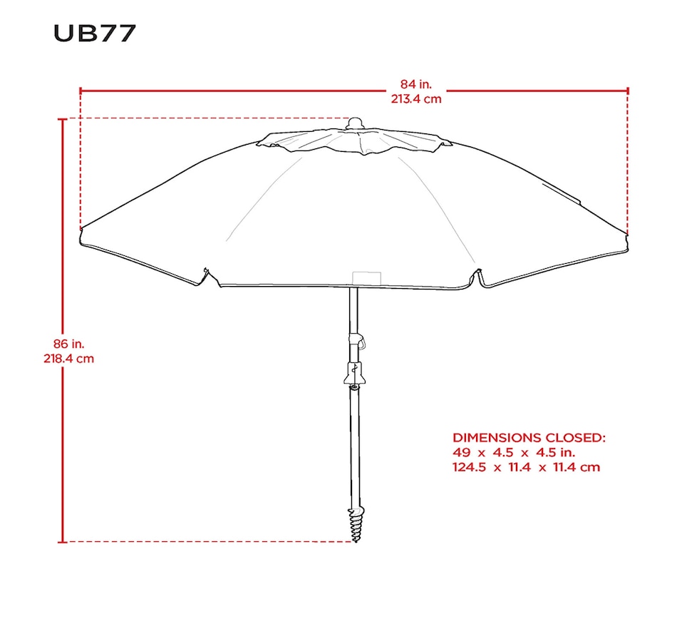 With a UPF 50 rating, the 7' Tilt Umbrella with integrated sand anchour is both striking and skin-smart. A silver sun blocking undercoating reinforces the heavy-duty polyester fabric, while the powder-coated steel pole can attach to a sand anchor for stability. Set up or take down your tilt beach umbrella in seconds and enjoy your outdoor fun the smart way.