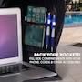• Fill the side compartments with your phone, cords, and other accessories for your laptop