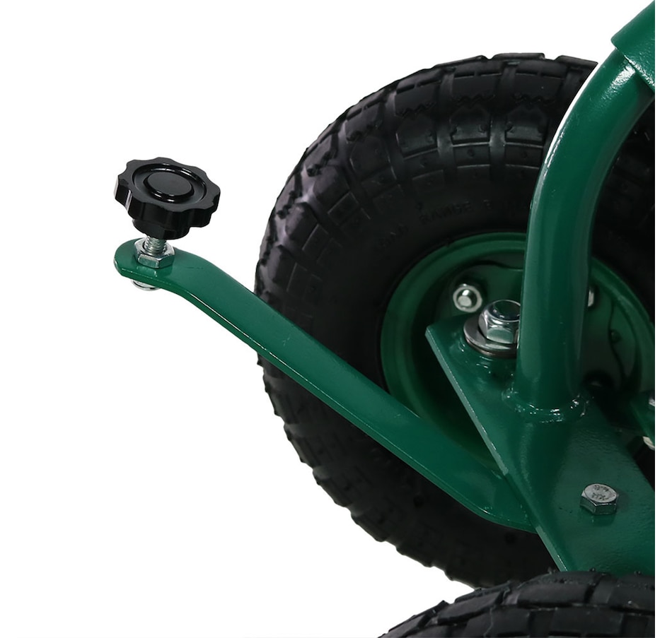 - Pneumatic wheels roll smoothly on various surfaces