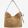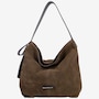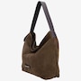 Dalo Hobo in Oiled Suede with Calf Trim. Jewelry Grade Platino Hardware. Top Zip Closure. Made in Italy.