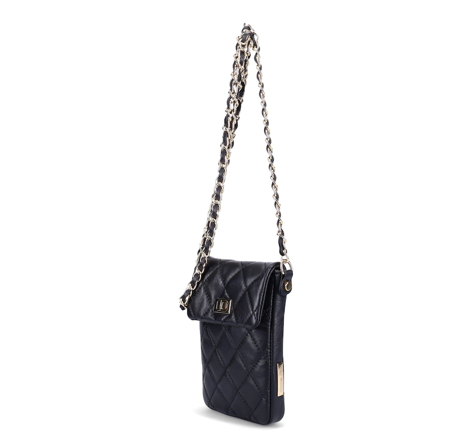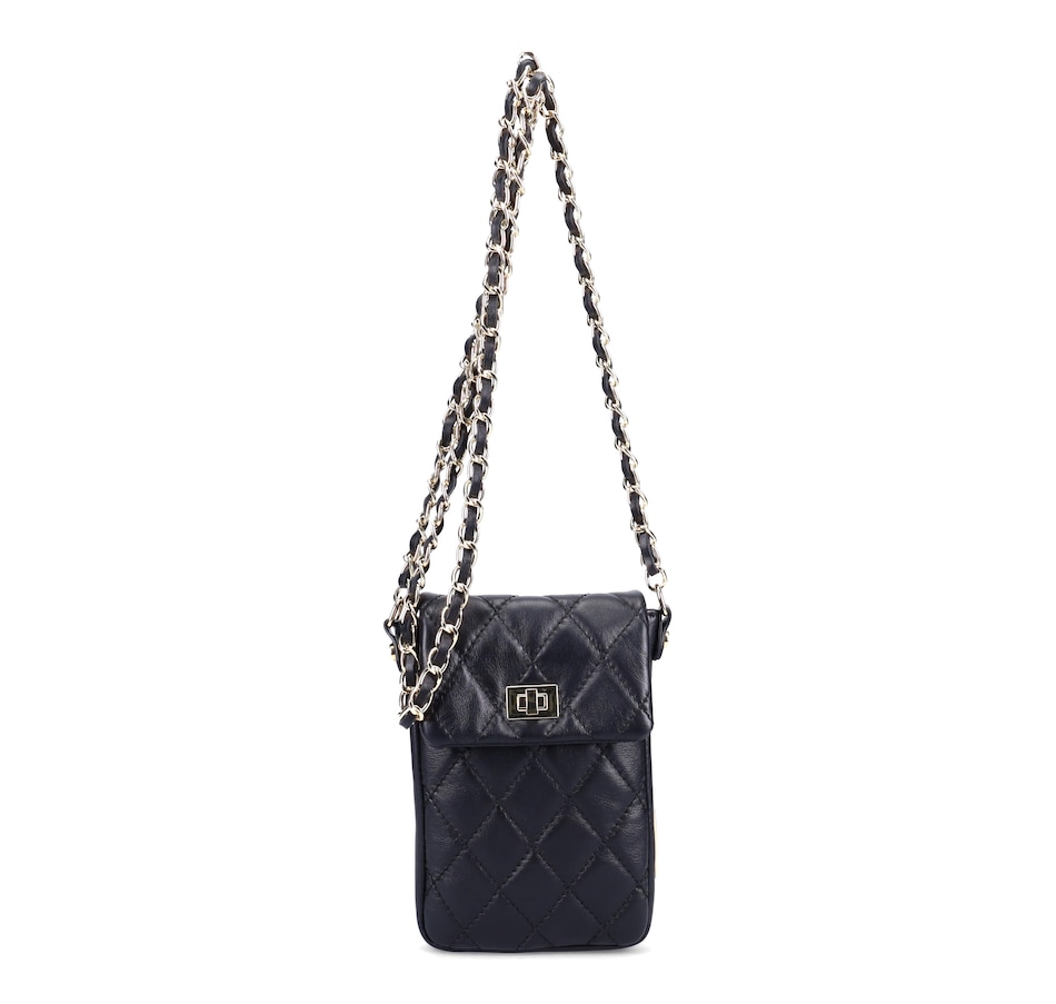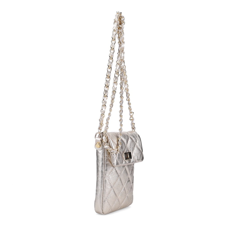 • Edina Crossbody Handbag in Quilted Nappa. Jewellery Grade Hardware. Top Flap Closure. Made in Italy.