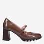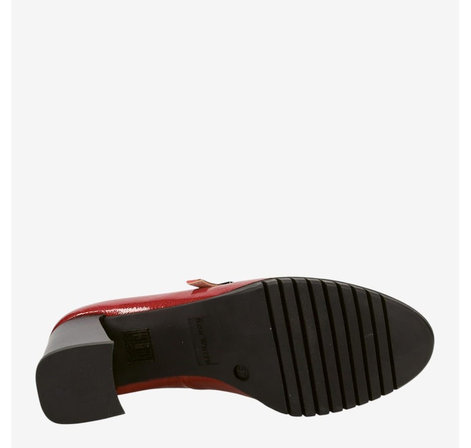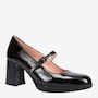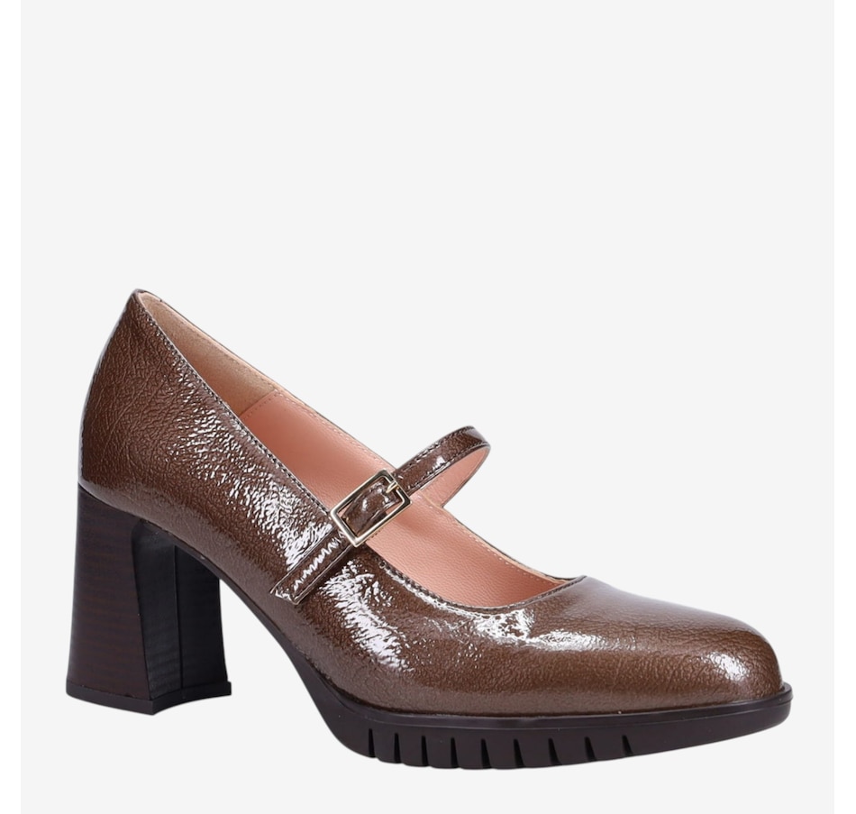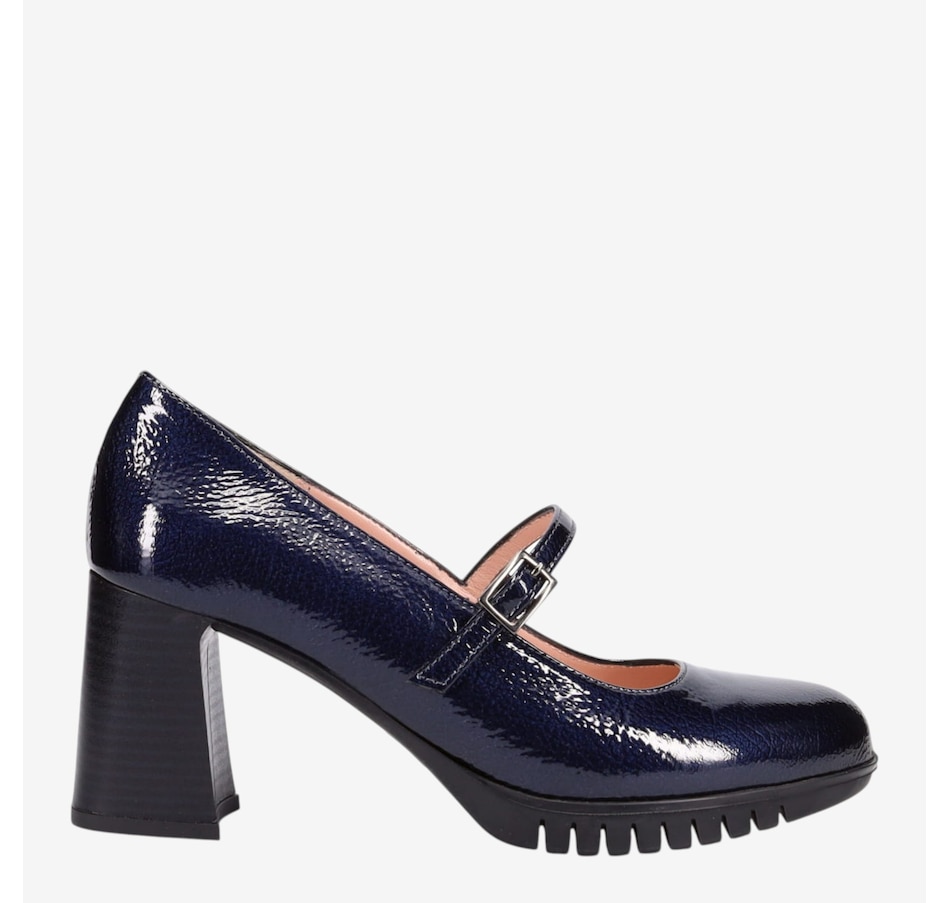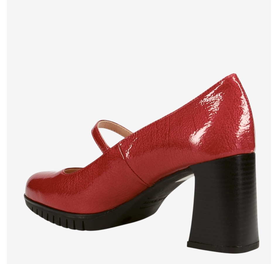 Felisha Patent Maryjane Pump in Soft Textured Patent. Adjustable Ankle strap with Buckle. Unique 4 mm Pillow Cushioning. Anti-Slip Rubber Sole. Weatherproof. Made in Italy.