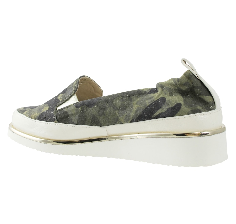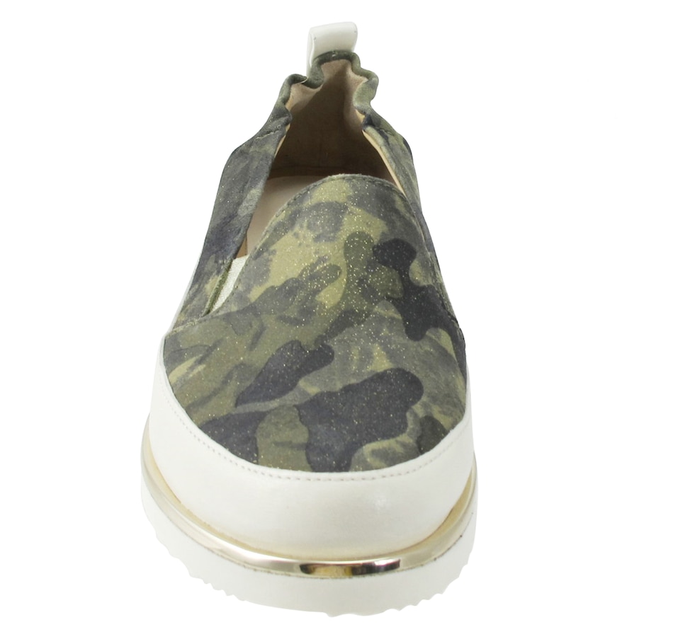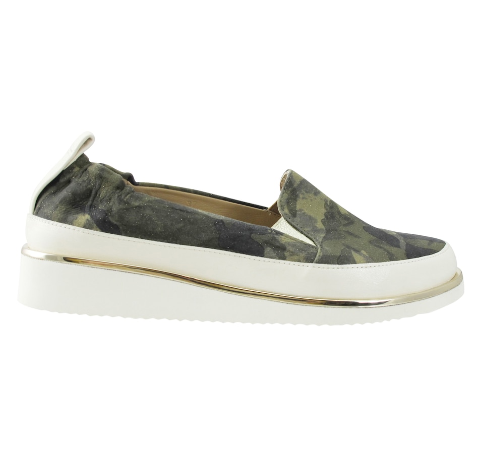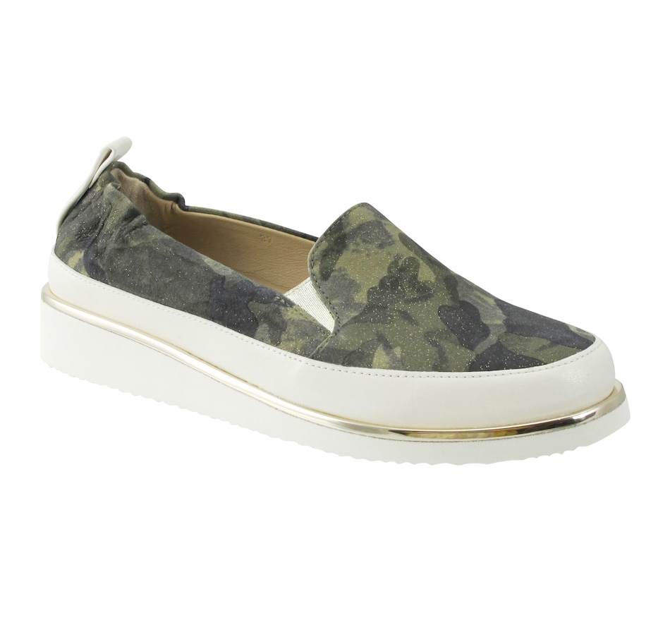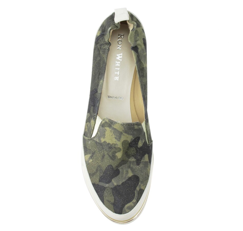 The Nellaya camo slip-on sneaker from Ron White is equal parts comfort and take-notice style. Not only does it have an irresistible look, but it also features Ron's unique pillow construction which combines ultra-soft uppers and superior midsole cushioning, seamless sacchetto construction, triple elastic, and an ultralight rubber outsole. It finishes out with a comfortable double padding, and will give all your outfits a finish that is beyond cool.