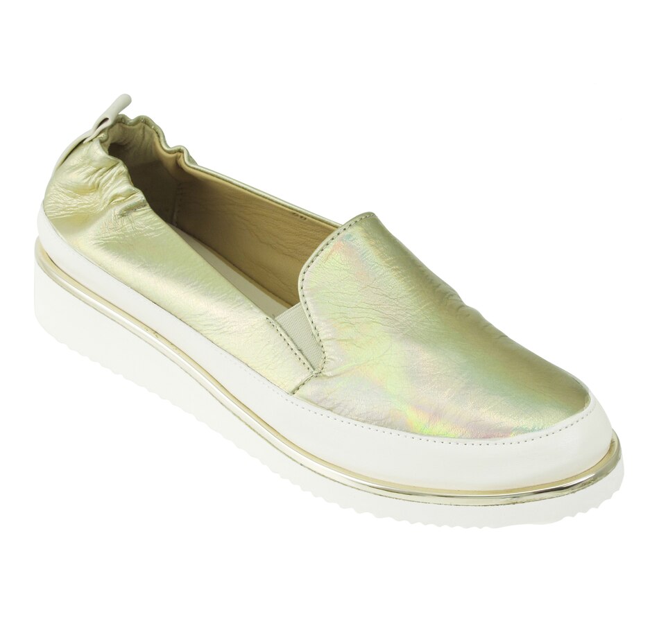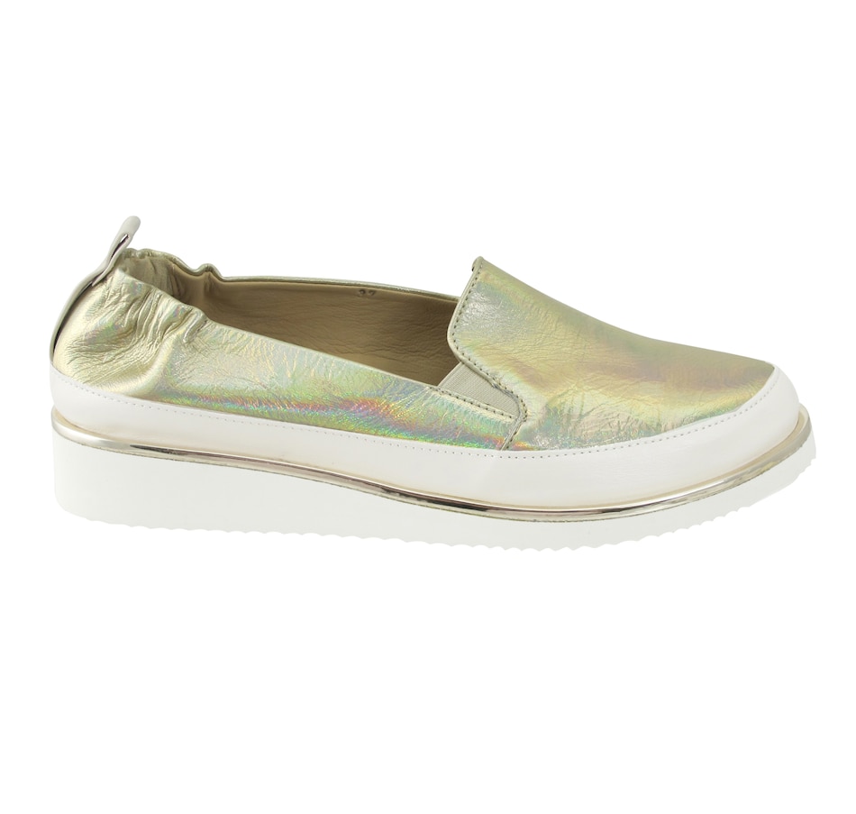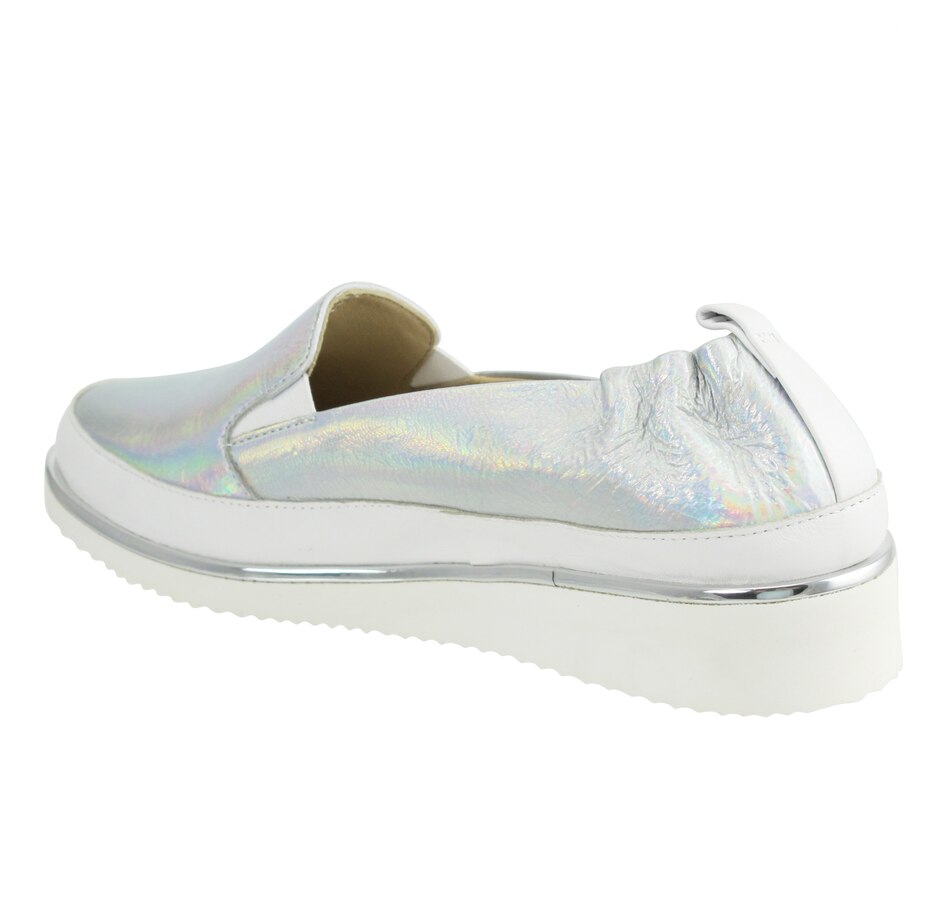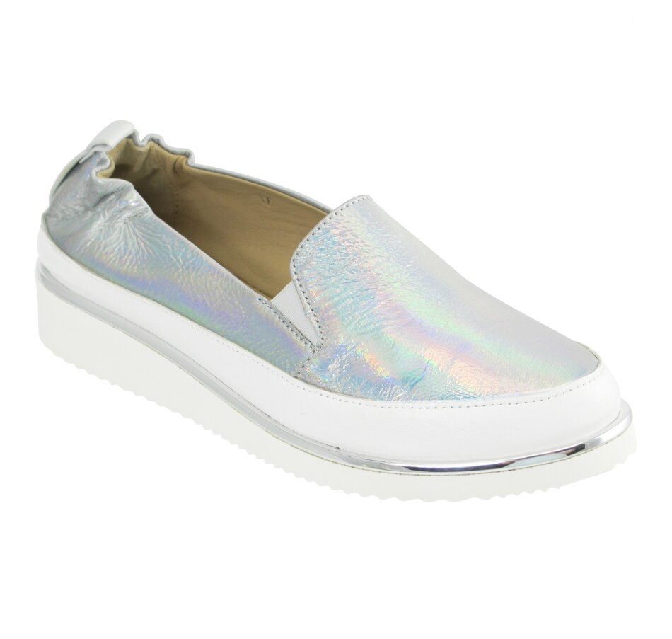• Fabric: metallic hologram nappa (upper), kid leather (lining), pillow cushioning (midsole), ultralight rubber wedge (outsole)