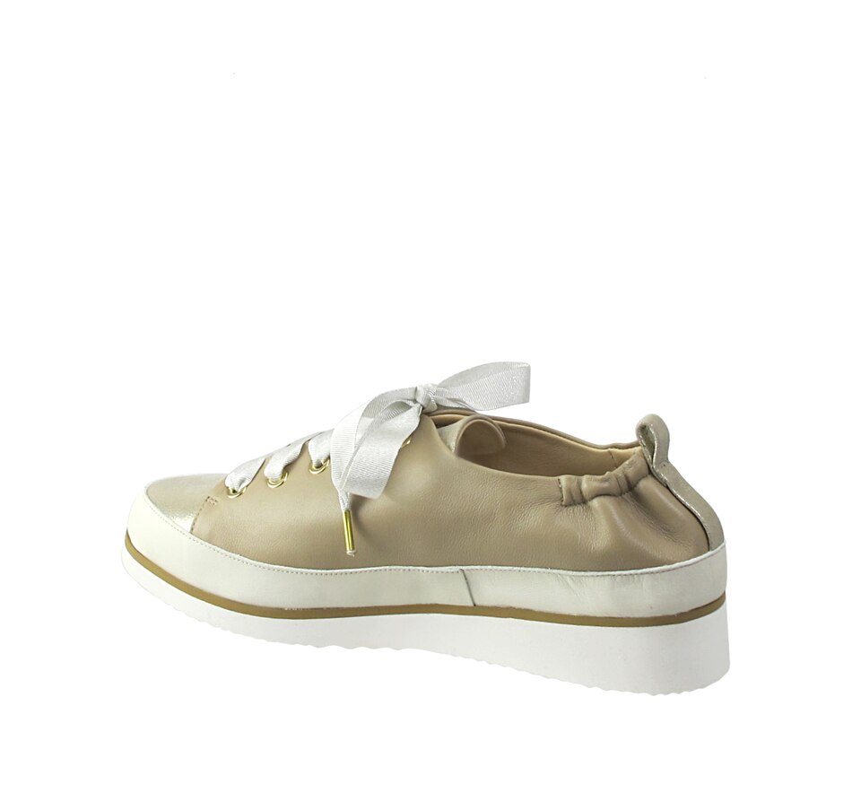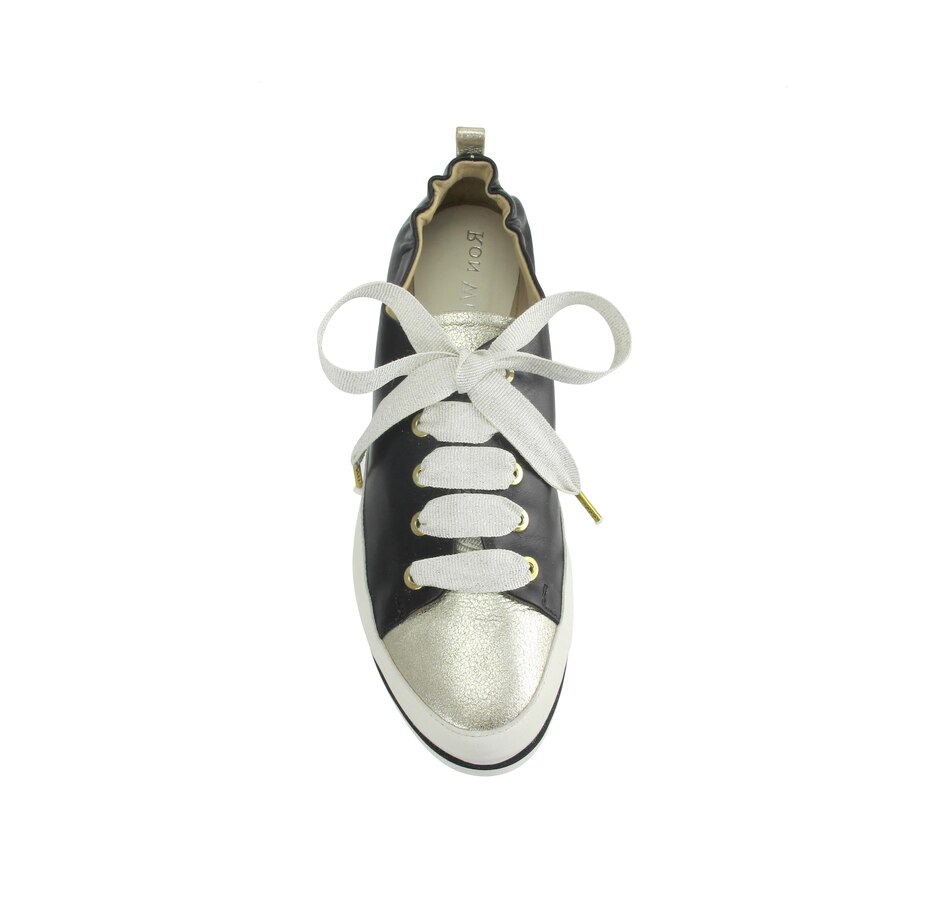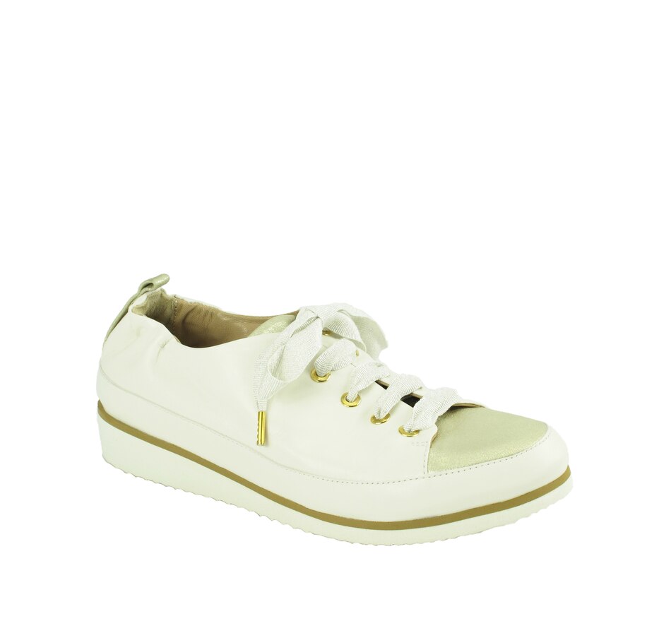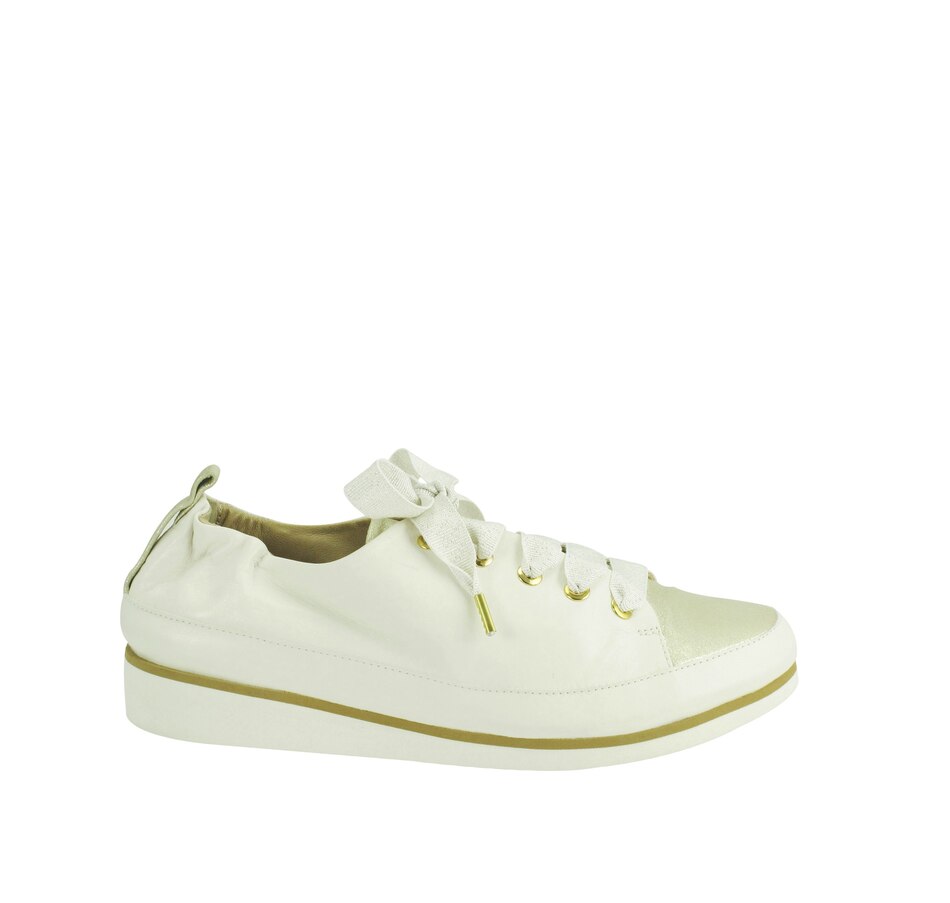 Nova Ultralight Sneaker in Nappa. Ice Nappa Trim. Grosgrain Metallic Ribbon Laces. Ultralight Wedge Outsole. Made in Italy.