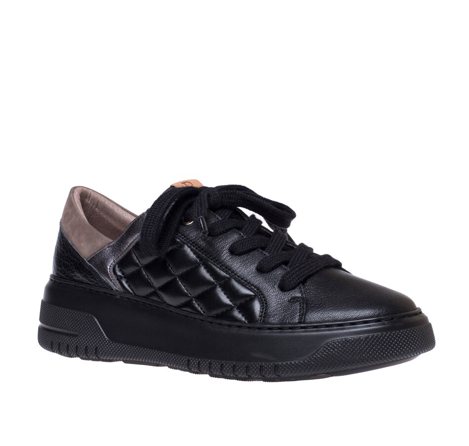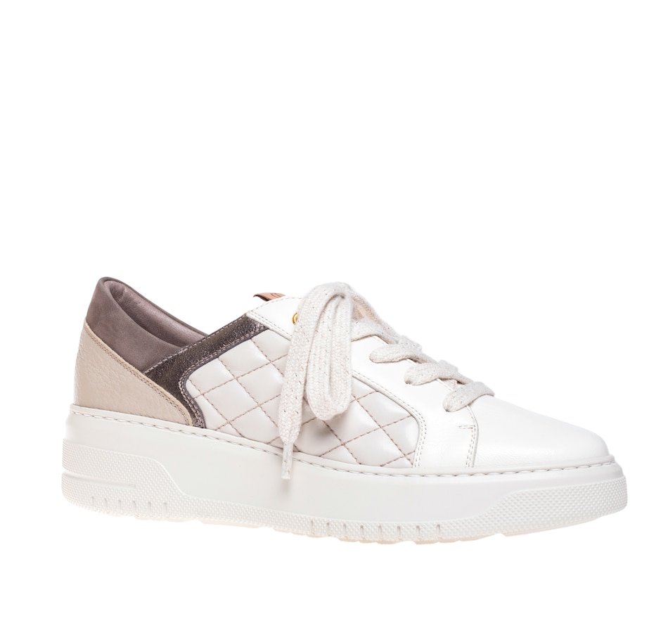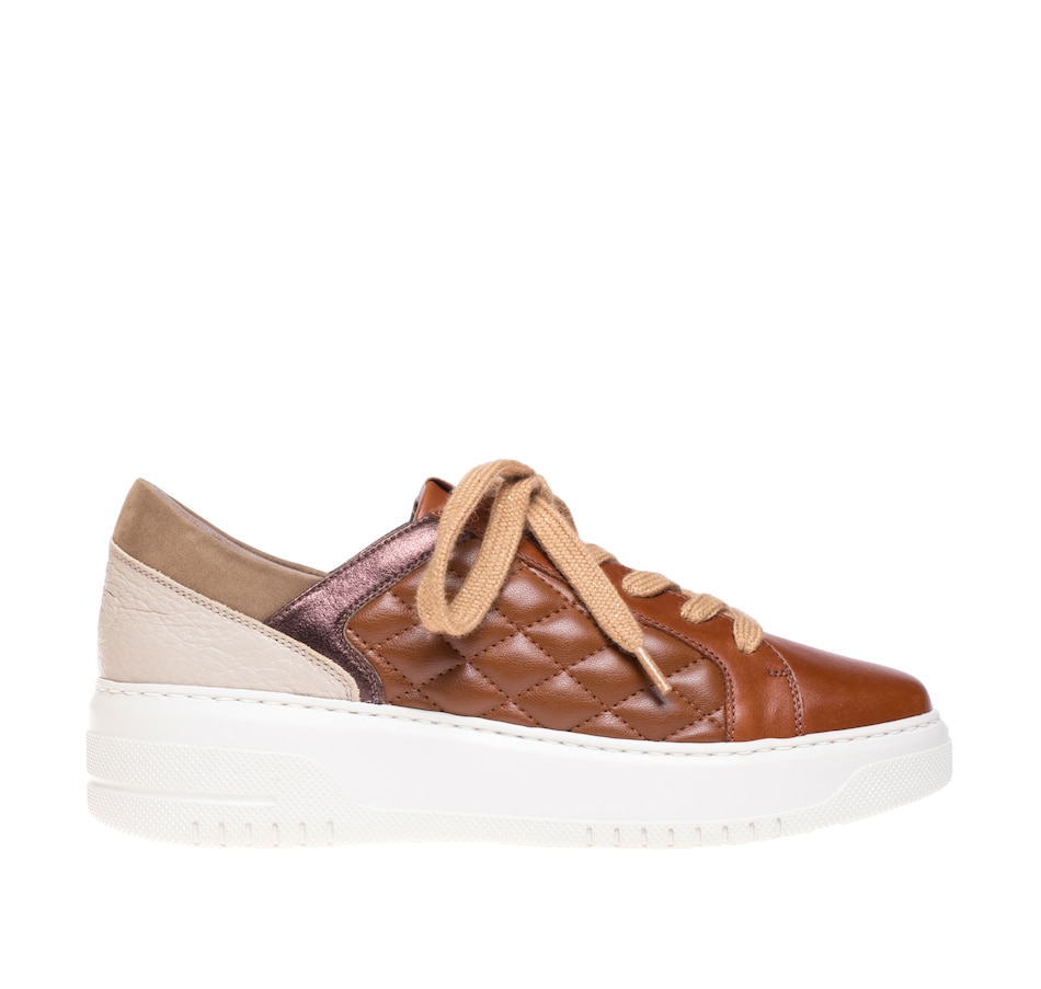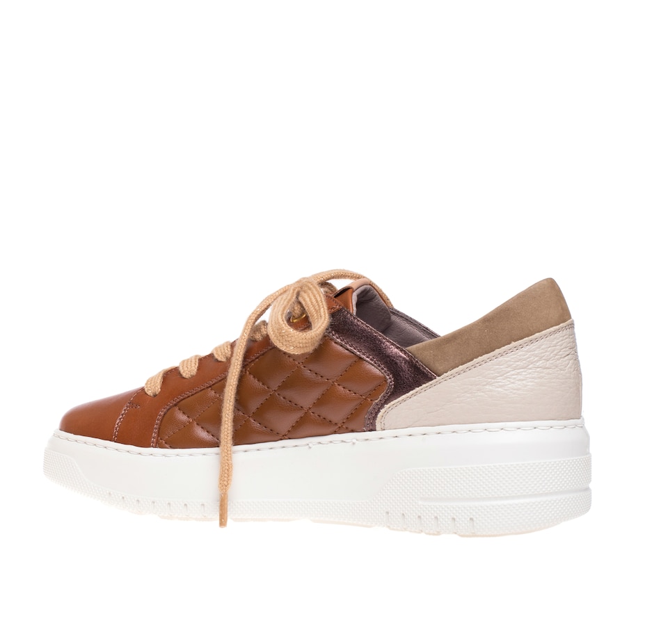 Olga Sneaker in Weatherproof Buttery Nappa and Weatherproof Quilted Nappa. Features a Full Removable Footbed with Arch Support. Includes two Sets of Laces one Sweater and one Cotton. Made in Italy.