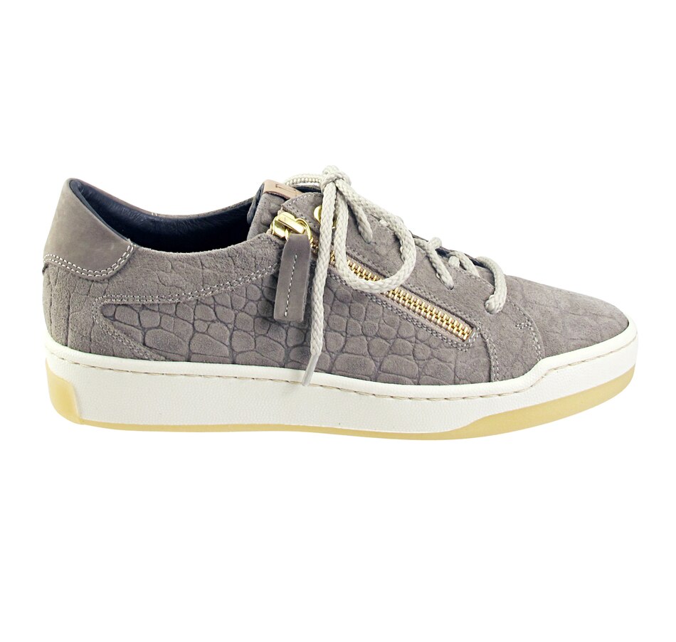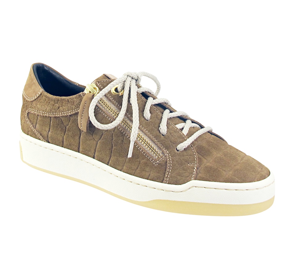 The Olympia sneaker in croco embossed suede from Ron White features fully functioning laces (with two sets included: one rope and one cotton) and an outside zipper. They also have a fully removable footbed with arch support, superior mid-sole cushioning, and are weatherproof, too. The perfect melding of function and style, the Olympia is sure to become an immediate favourite in your shoe collection, and is available at a showstopper value right here at TSC!