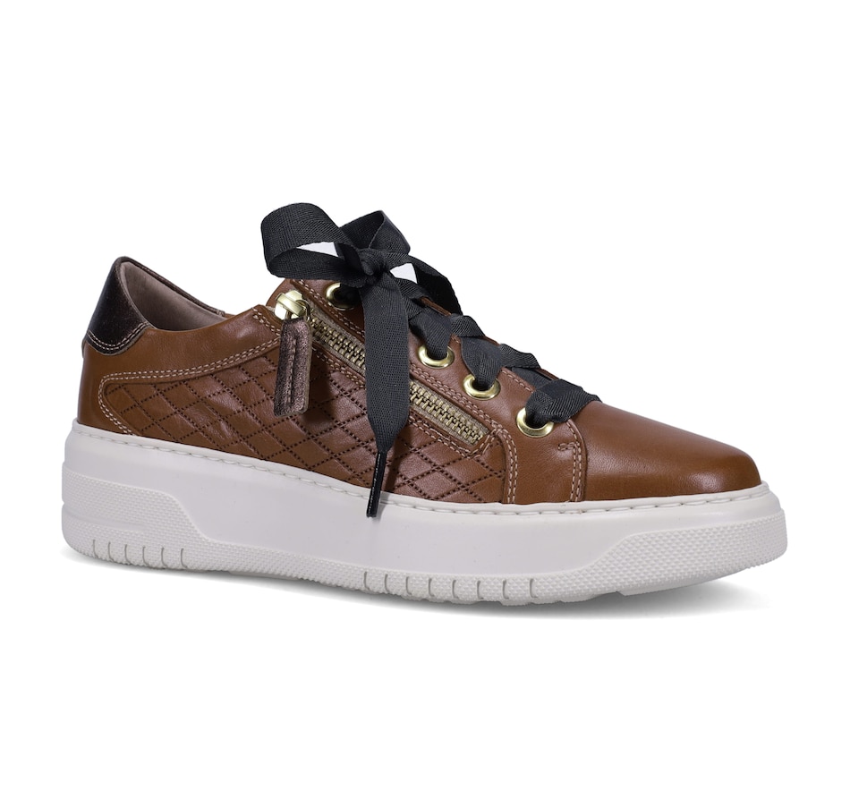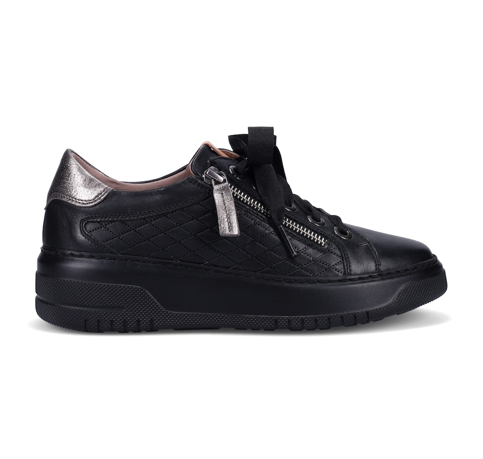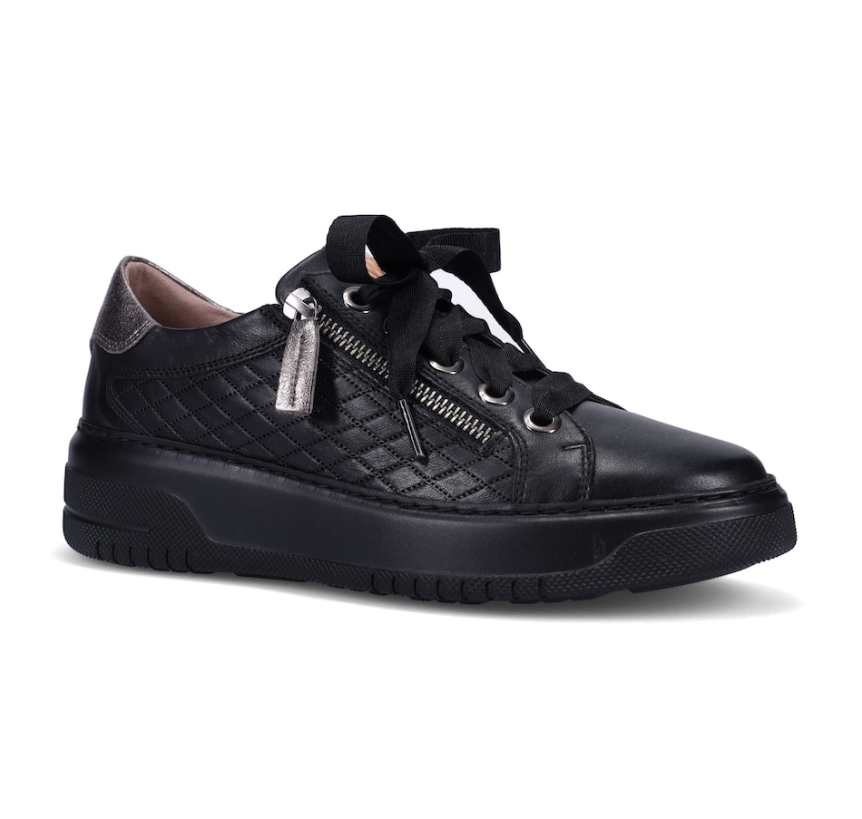 Ominie Footbed Sneaker in Weatherproof Buttery Nappa. Fully Functioning Laces with Outside Zipper. Features a Full Removable Footbed with Arch Support. Anti-Slip Rubber Outsole. Made in Italy