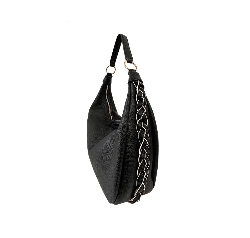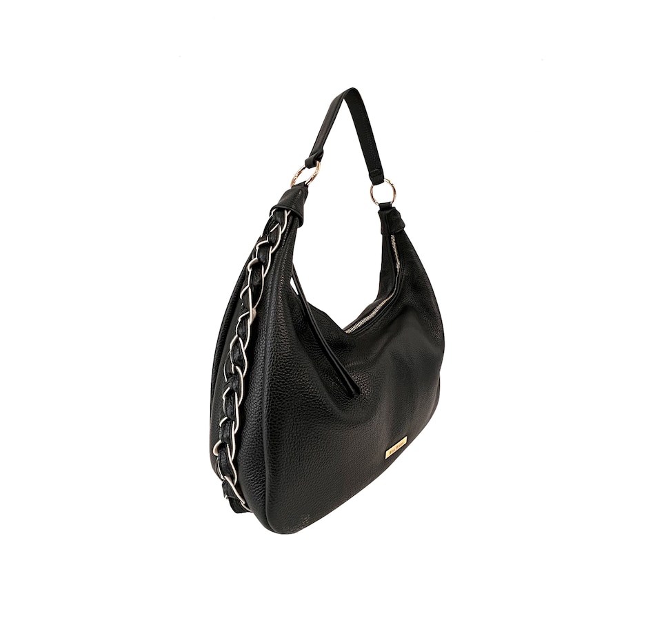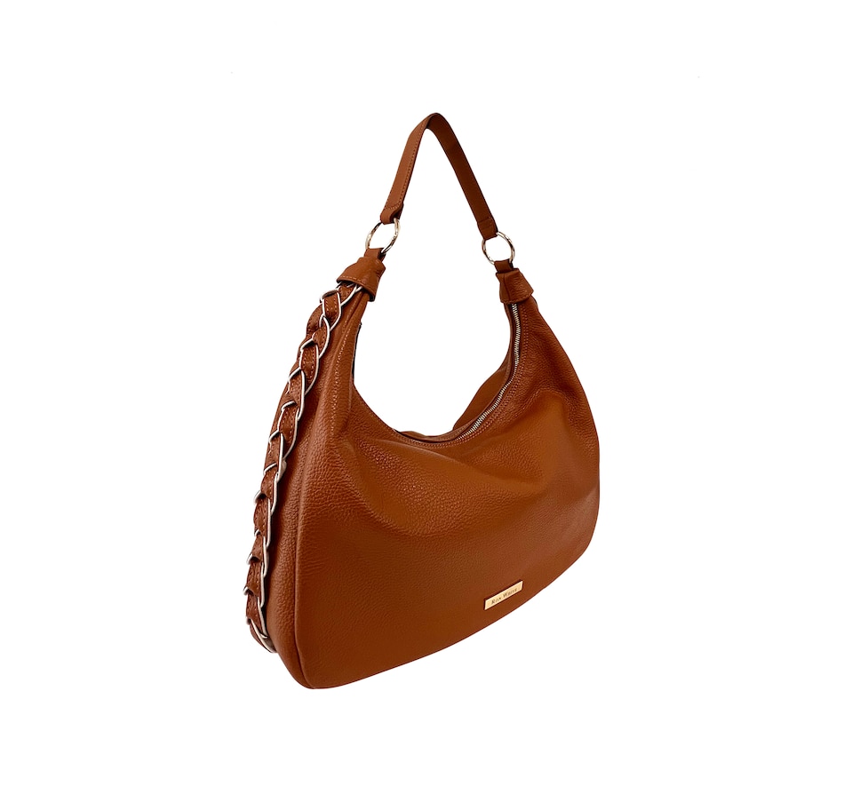 Preston Hobo Bag in Supple Tumbled Calf with Linen Braid Detail. Jewelry Grade Platino Hardware. Top Zip Closure. Made in Italy.