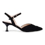 Quinelle Kitten Heel in Weatherproof Buttery Nappa. Double Padding. Adjustable Buckle. Made in Italy.