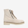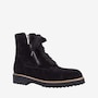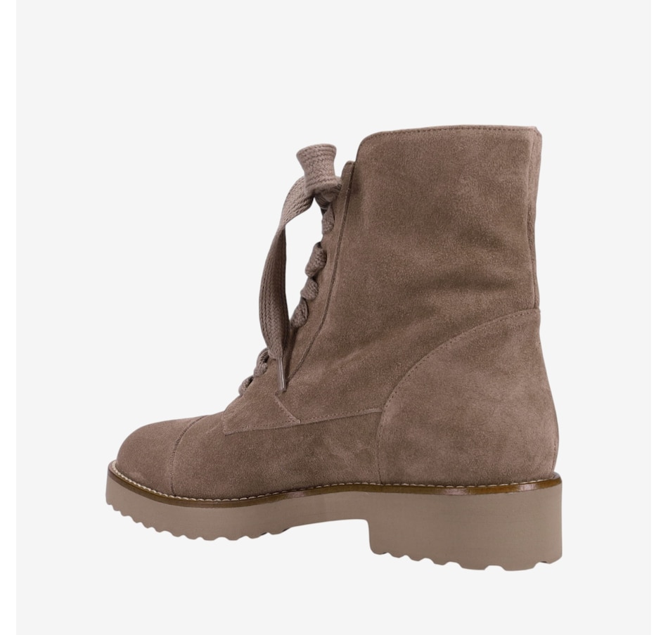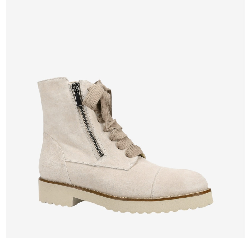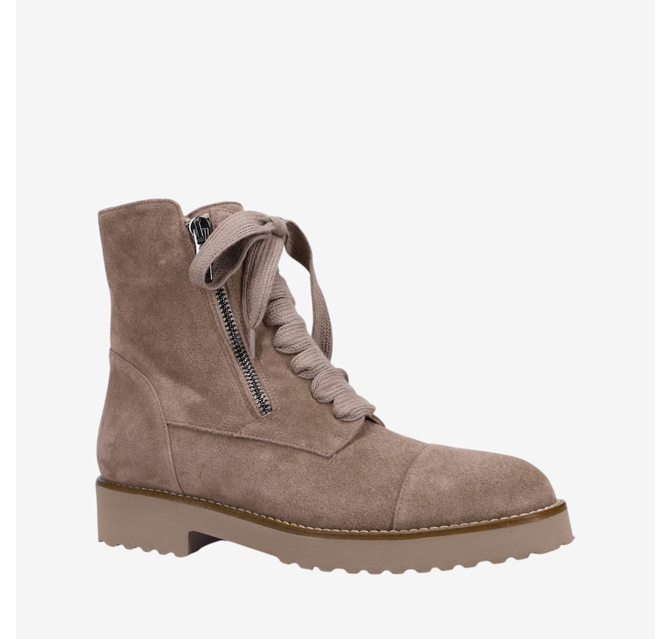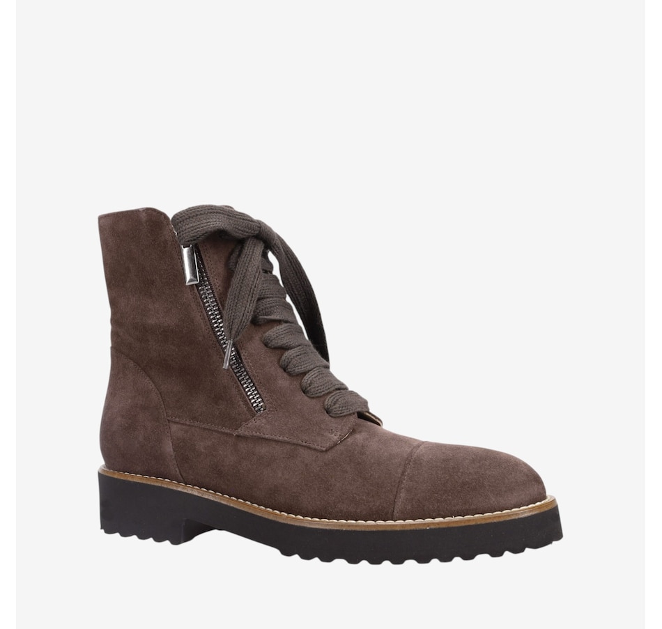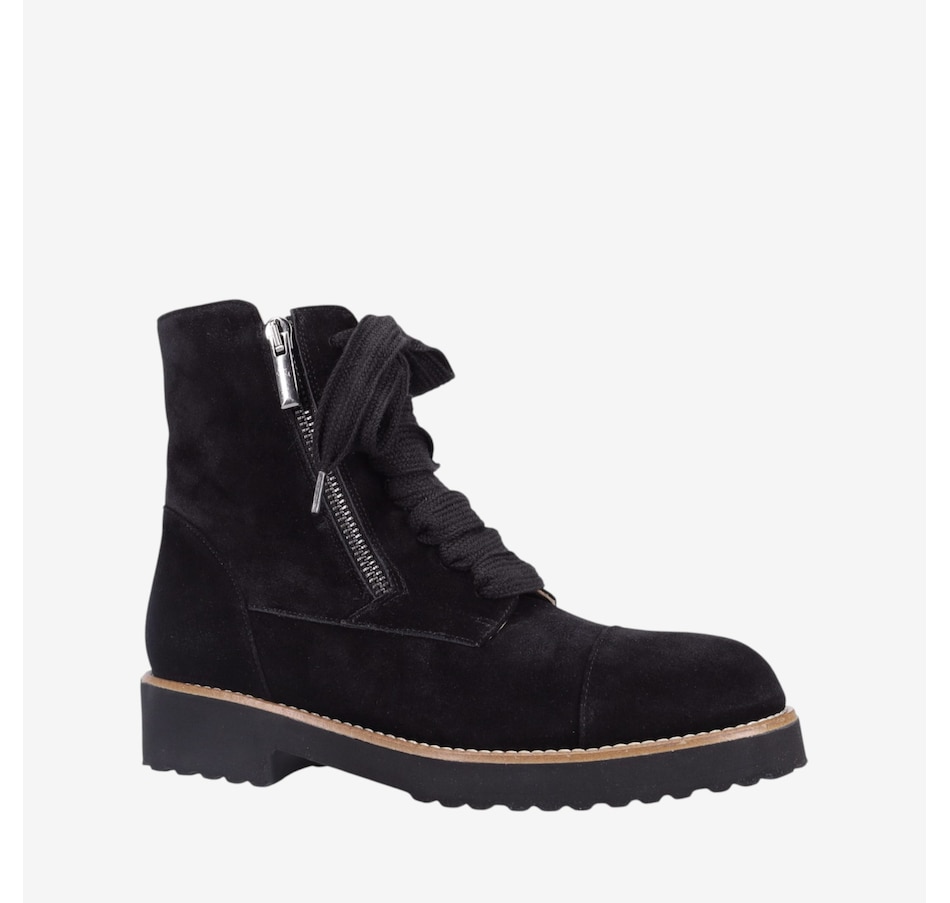 Tara Ankle Boot in Weatherproof Suede. Sweater Laces with Outside Zipper. Double Padding. Anti-Slip Ultra Light Rubber Mini Lug Outsole. Made in Italy.