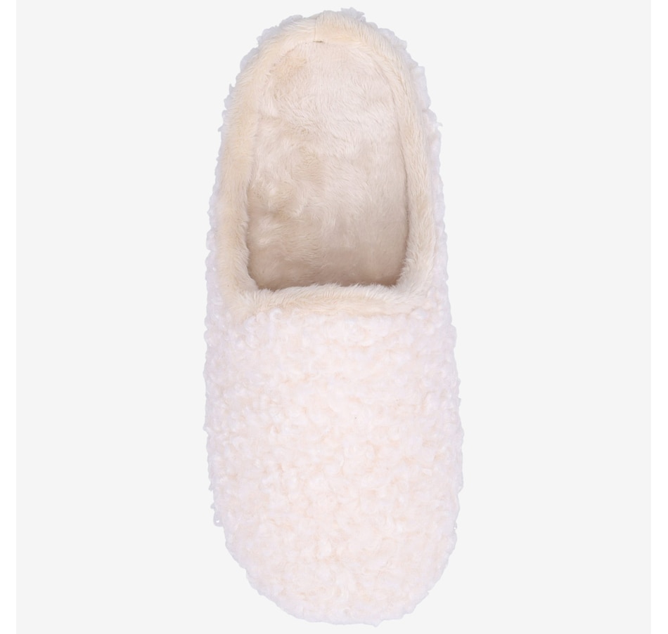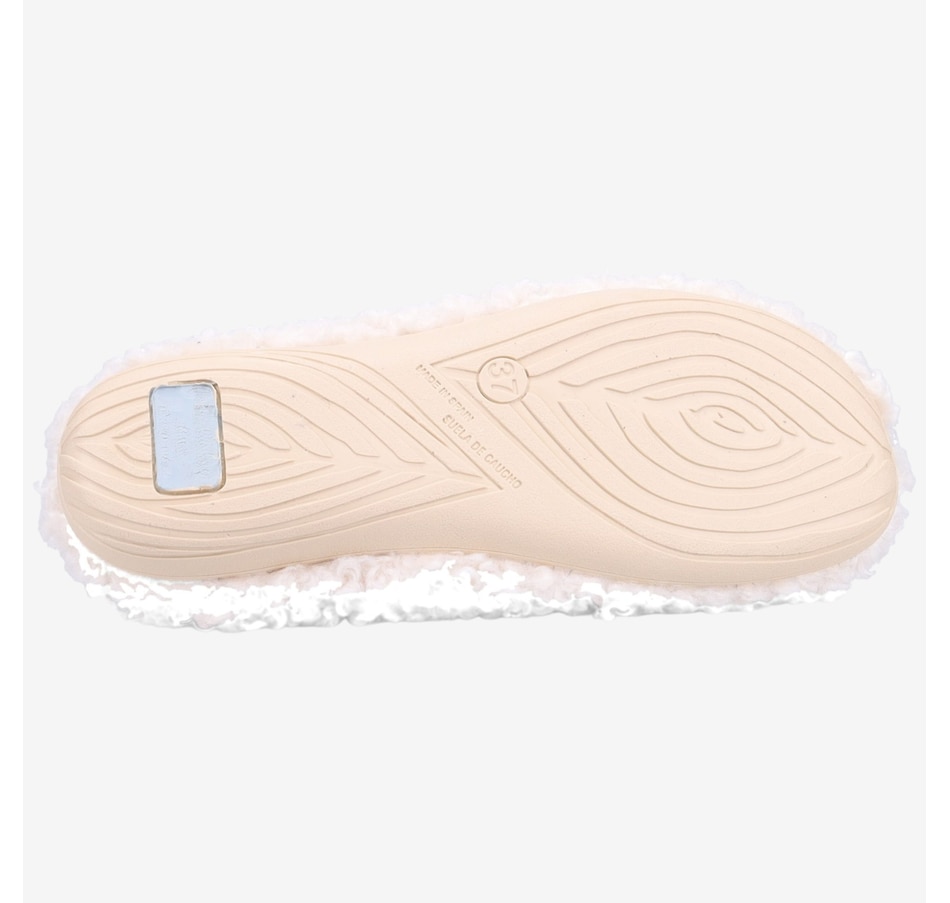 • Fabric: (upper) wool boucle; (lining) cozy plush; (midsole) plush sock lined removeable insole; (outsole) anti-slip rubber