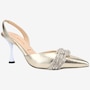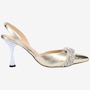 Buttery Metallic Nappa with with Crystal Trim. Halter-Back with Elastic. Sumptuous Double Padding. Made in Italy.