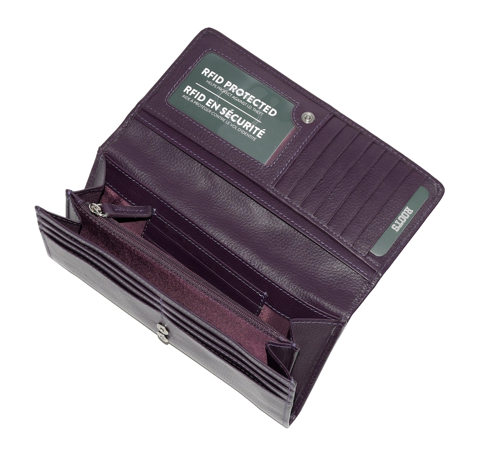 This Expander clutch wallet is a popular accessory that holds up to 15 cards. It features an ID window for quick access, two expandable pockets for cash and other items, and two secured zipper pockets for important papers and receipts. The expandable snap keeps this wallet closed and secure, and keeping you organized and stylish!