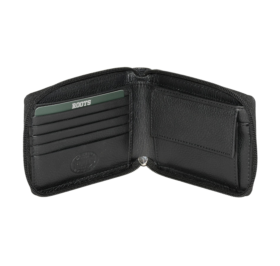 Uniquely styled with a secured three way zip closure this soft-touch milled leather wallet by ROOTS is a classic and functional design. Open up the secured zipper closure and you will find multi functional pockets that will hold credit cards, receipts, ID and so much more. This wallet also features a gusseted coin pocket. Everything you need for a complete and organized wallet.
