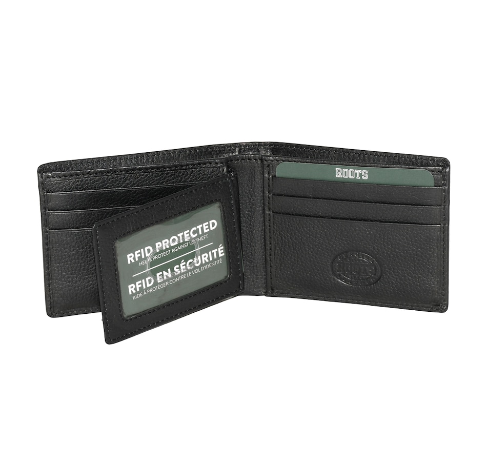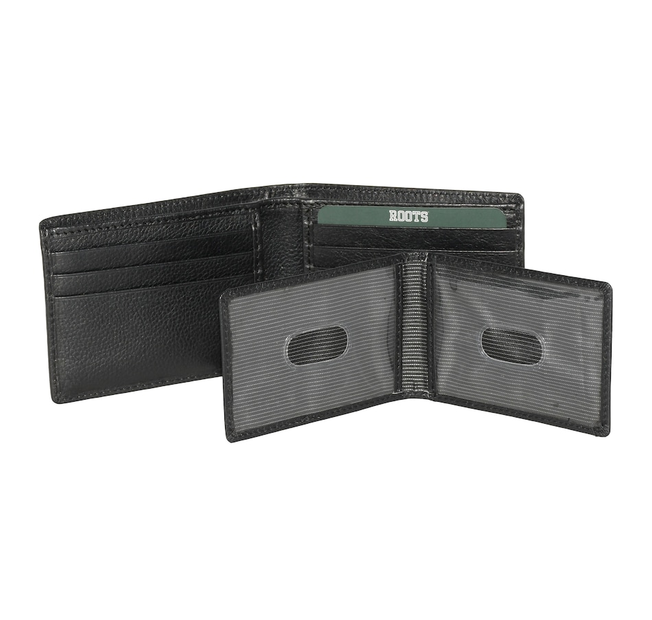 Classic, comfortable and timeless is the best way to describe this ROOTS slimfold wallet with a removable center passcase. Part of our Marine Collection, this wallet will keep your cash and cards compact and organized. The center passcase features two easy access ID windows. All of this is handcrafted in beautiful genuine milled leather.Â