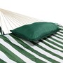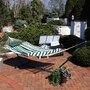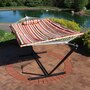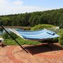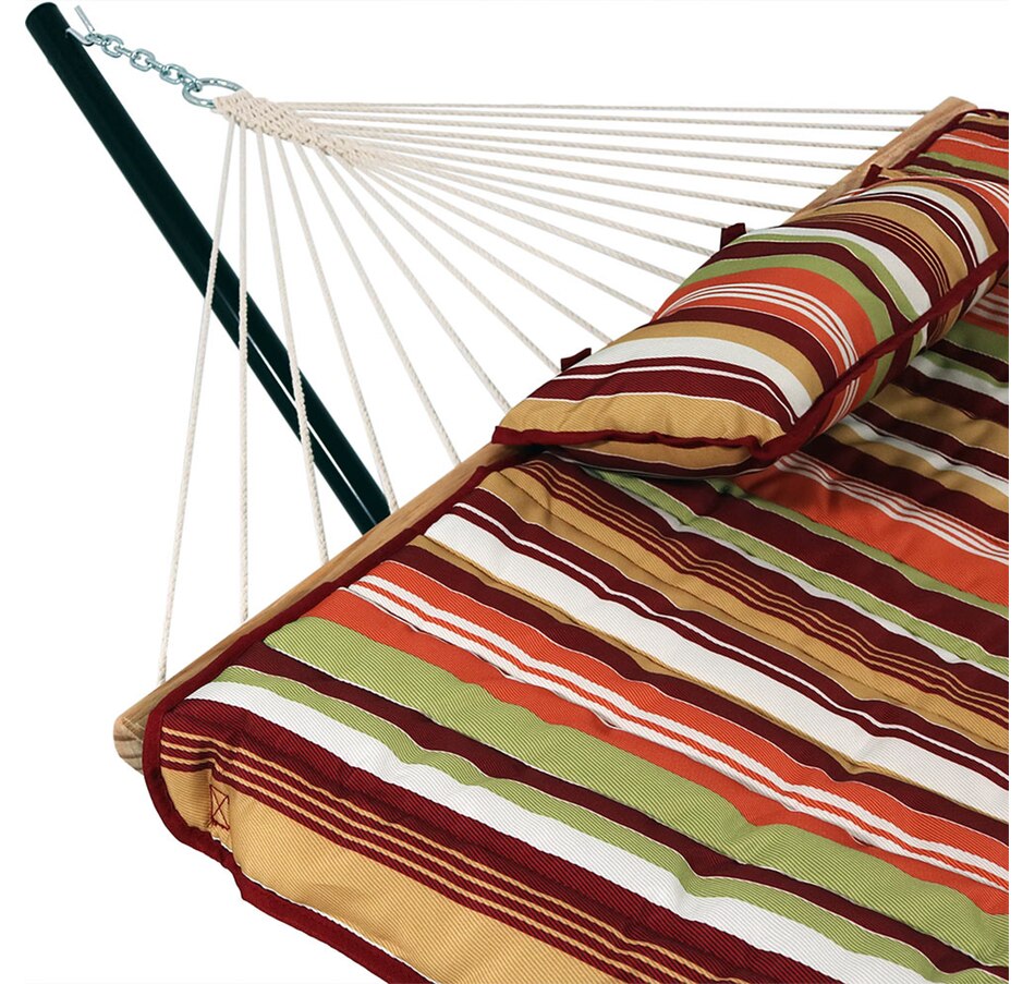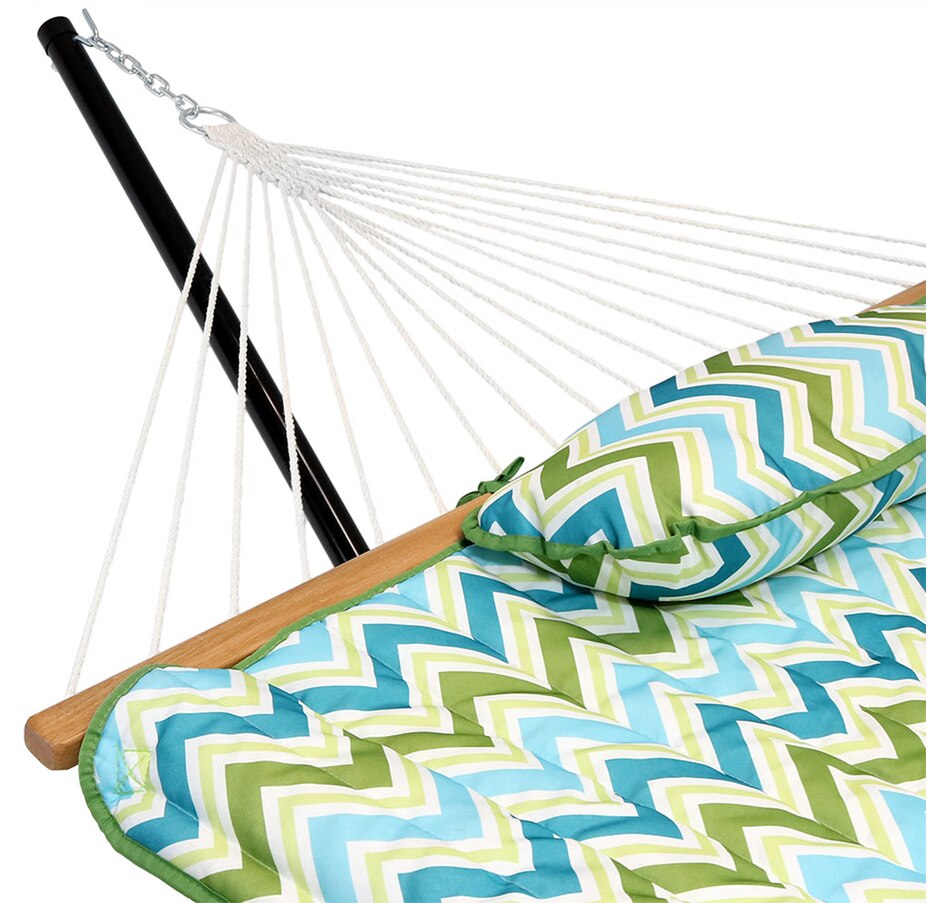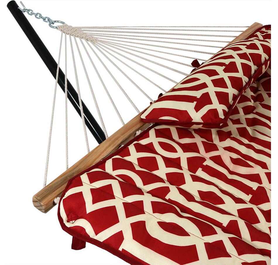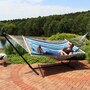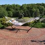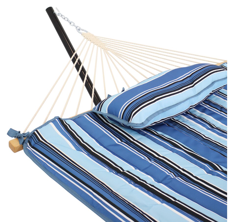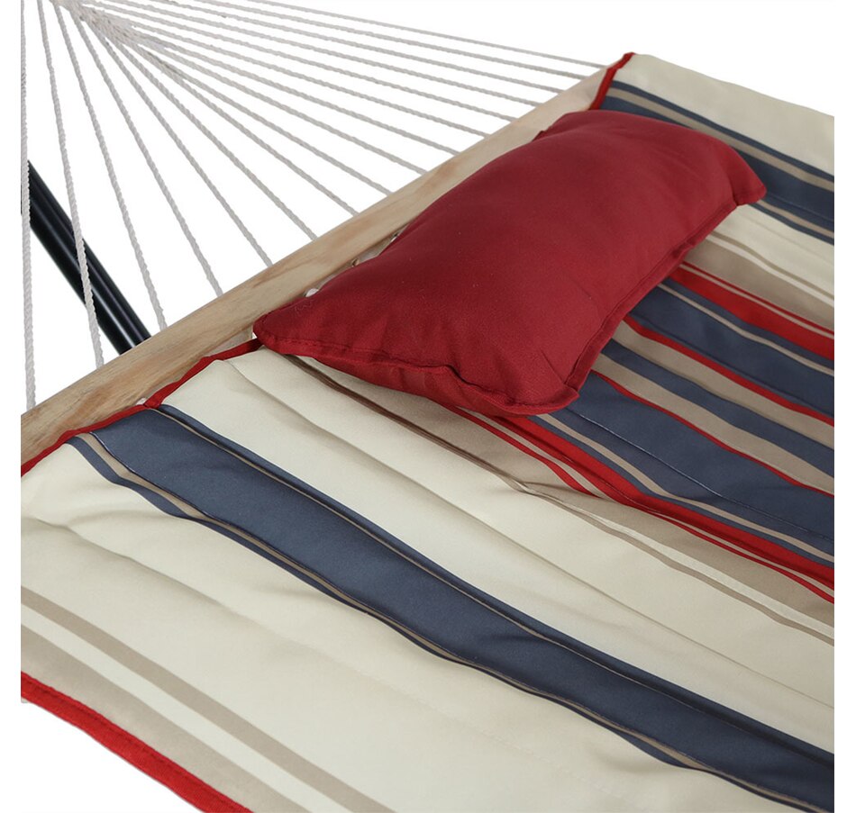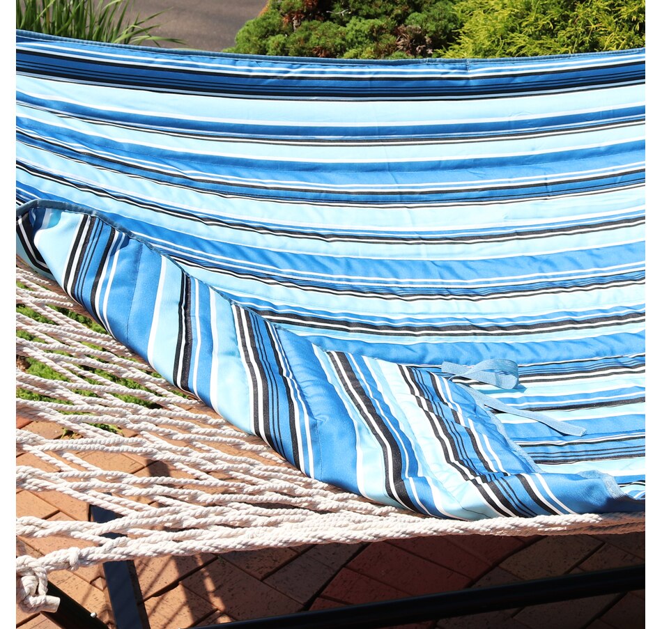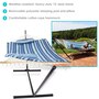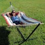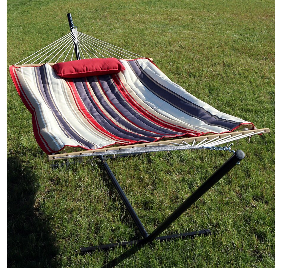 Relax outdoors with this complete hammock and stand set, designed for convenience and comfort. The set includes a classic rope hammock, a cushioned pad, a matching pillow, a 12-foot heavy-duty steel stand, and all necessary hardware for assembly. No trees are required—place the freestanding hammock anywhere from a backyard to a patio, deck, or shaded garden spot. The included stand makes setup and takedown quick and hassle-free, allowing for easy relocation or seasonal storage. The steel frame provides strong, stable support, while the hammock pad and pillow add extra comfort for lounging, reading, or napping. Whether placed in the sun or beneath a canopy, this hammock set offers a peaceful spot to unwind during warm days or starlit evenings. Designed for portability and ease of use, this set combines function and style for a relaxing outdoor retreat in any space.