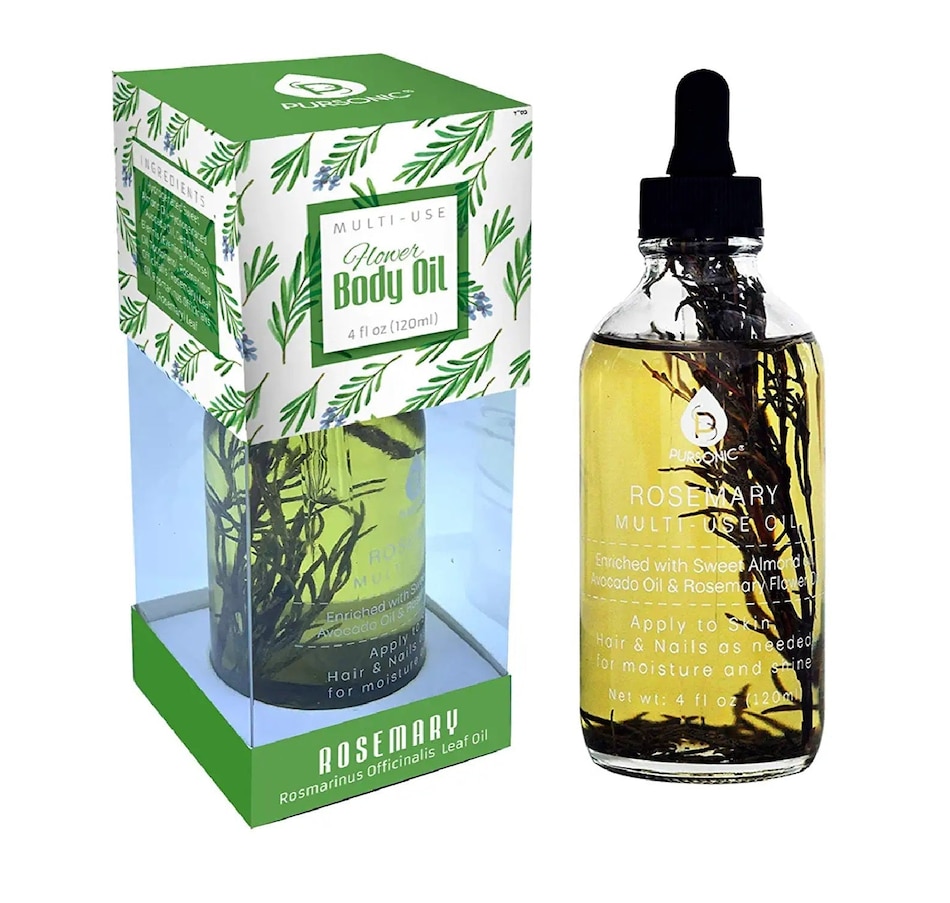 The Pursonic Multi-Use Oils may well be the ultimate gift from nature. Made from the aromatic essences of plants, they have a remarkable ability to affect a person's well-being and improve the environment around them. Explore the many Multi-Use offered by Pursonic that can help you achieve physical , emotional, mental and spiritual well-being. It will help you stimulate your senses and enable you to sink into a relaxed world of serenity, healing and self balance. Apply to Skin, Hair & Nails as needed for moisture and shine.Feature: It can effectively shrink pores, improve skin relaxation, soothe skinHelp skin maintain firmness and elasticityStrengthen hair, promote scalp blood circulation, nourish scalp, improve dandruffSweet and soft rosemary scent, can help to increase energy. Enriched with sweet almond oil, Avocado Oil & Rosemary flower oilModel: FBORM120