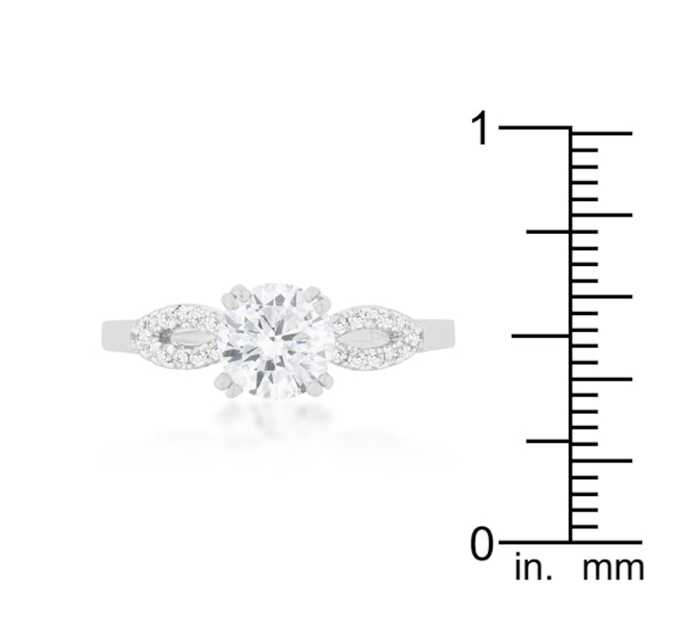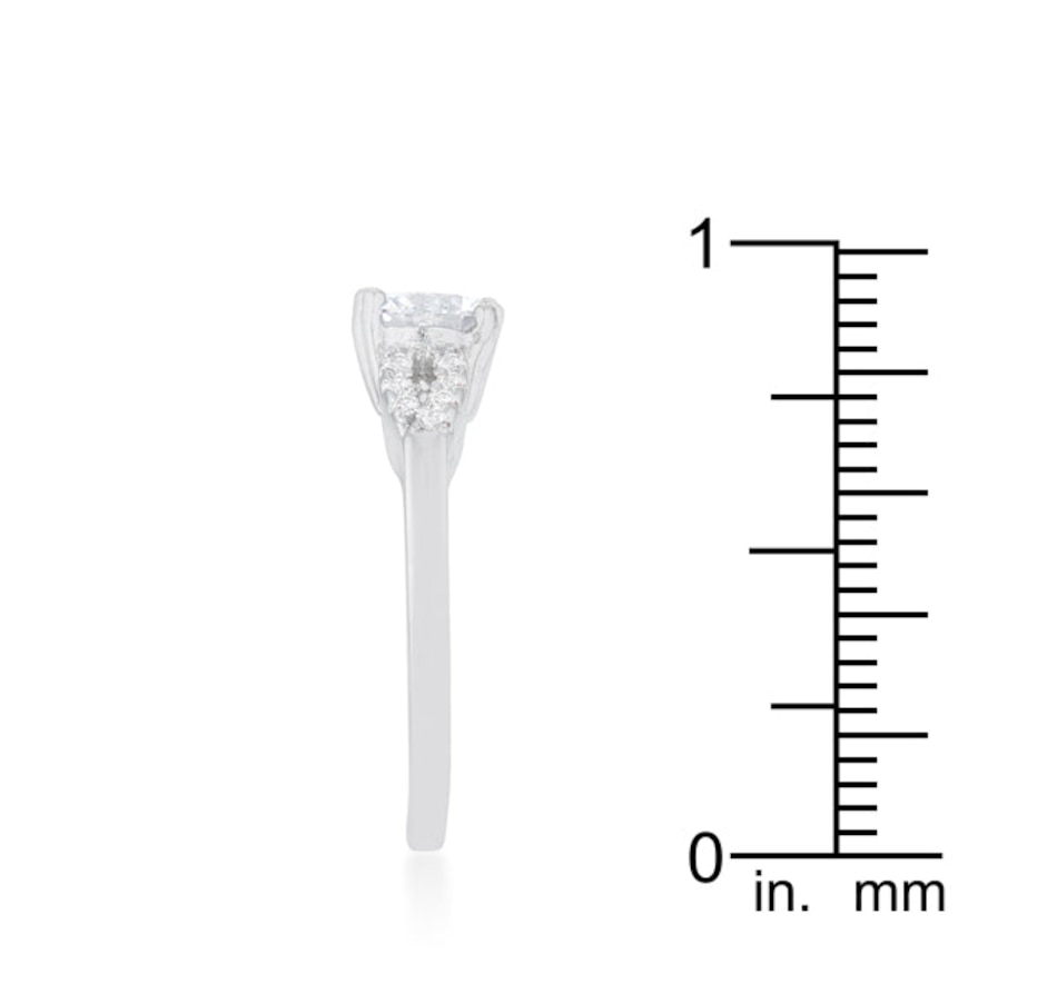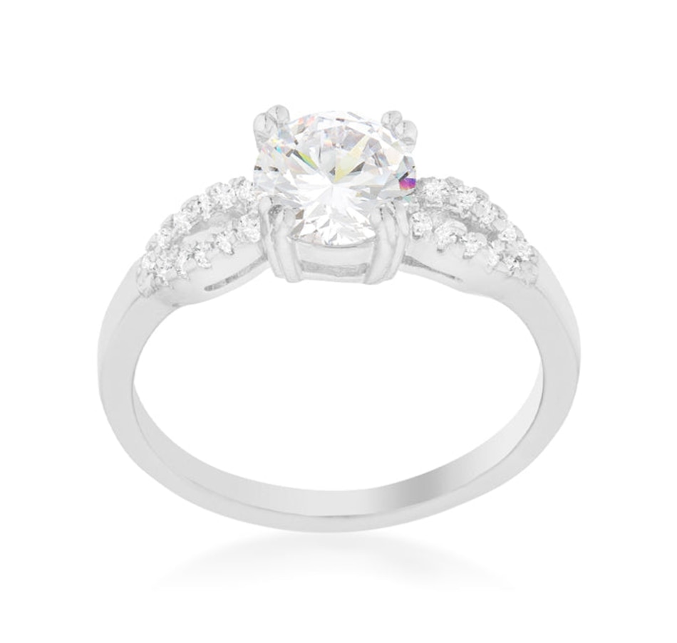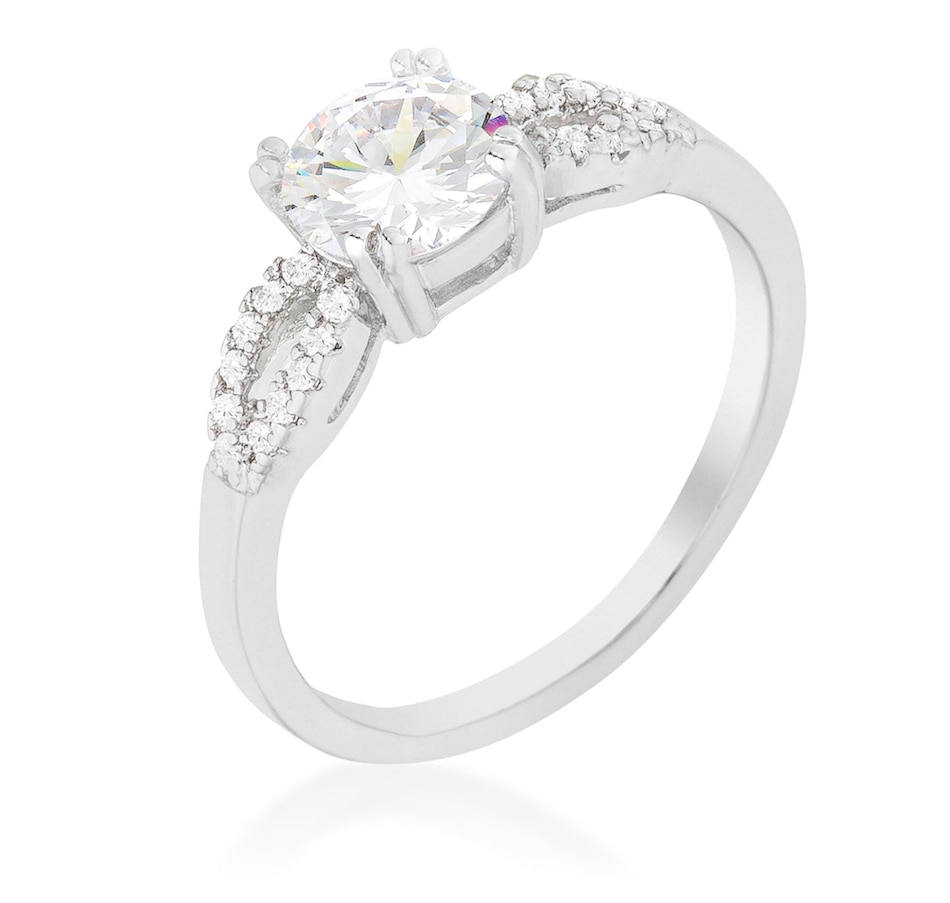 Feminine and elegant. Simple and solitaire. This ring is a lovely addition to any collection. Our genuine finish is achieved using an electroplating process that coats the item with heavy layers of a close cousin to platinum which gives our jewelry a platinum luster.