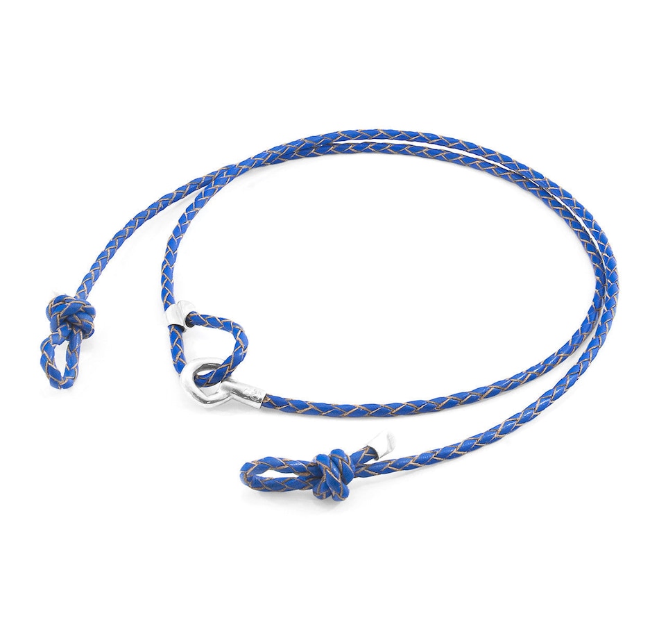 The Royal Blue Blake Silver and Braided Leather Eyewear Strap was both designed and skilfully handcrafted completely in Great Britain. Combining British craft manufacturing with a discerning modern-minimalist style, this ANCHOR & CREW eyewear strap features:Genuine and natural round-shaped braided leather (GB)Secure solid .925 sterling silver hexagonal loop-clasp and miniature divider pulley (GB)SIZINGThis eyewear strap is one size fits all, with the leather able to extend or tighten to suit your ear-to-back length. To take the eyewear strap on or off your glasses, tighten the knots around the glasses' temples (arms), and to adjust the strap's length, simply slide the miniature divider pulley around the leather to make the loop size smaller or larger. Less is More.