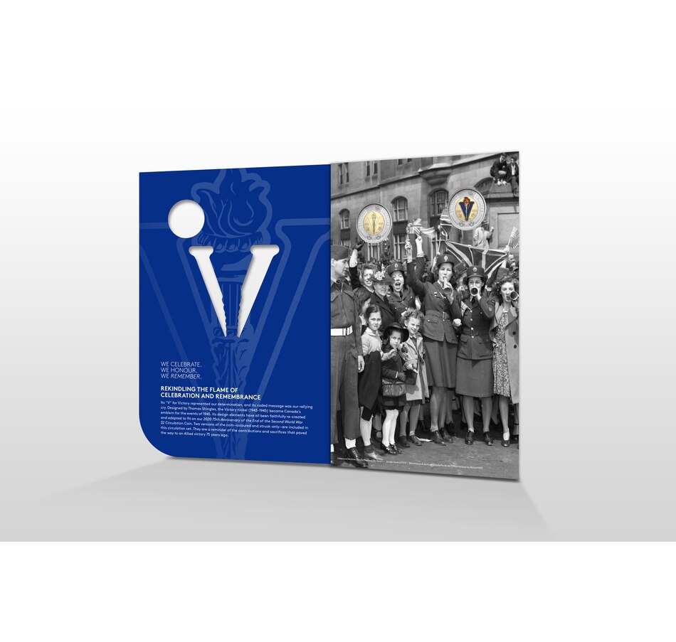 The set includes high-quality numismatic uncirculated examples of all the denominations in circulation from the five-cent coin to the two-dollar coin. The highlight of the set is two different versions of a commemorative two-dollar coin marking the 75th anniversary of the end of the Second World War and the dawn of a new era of peace.