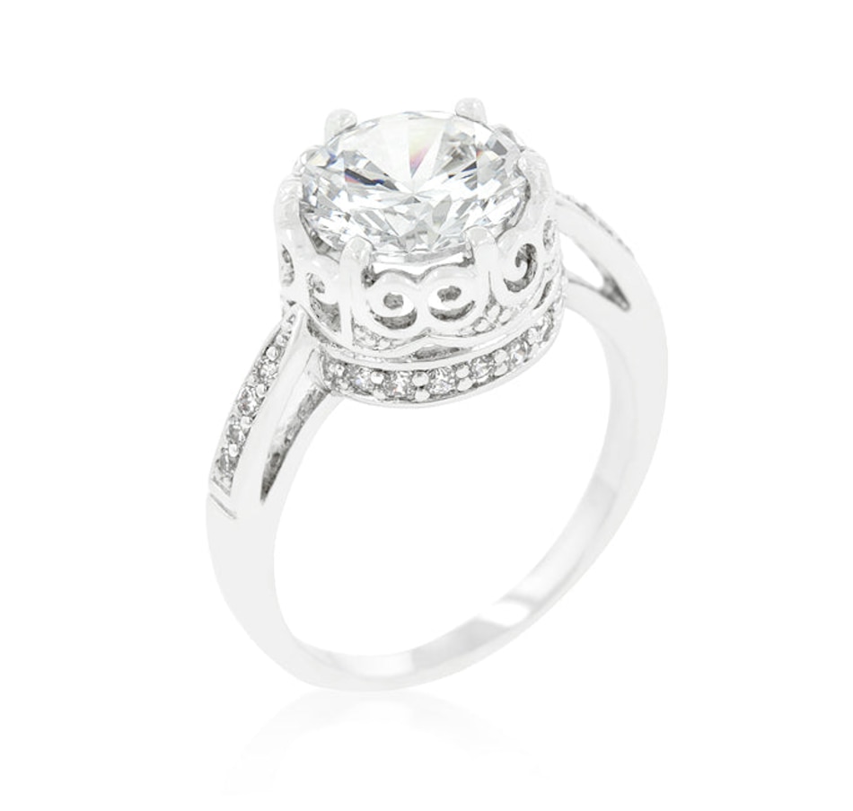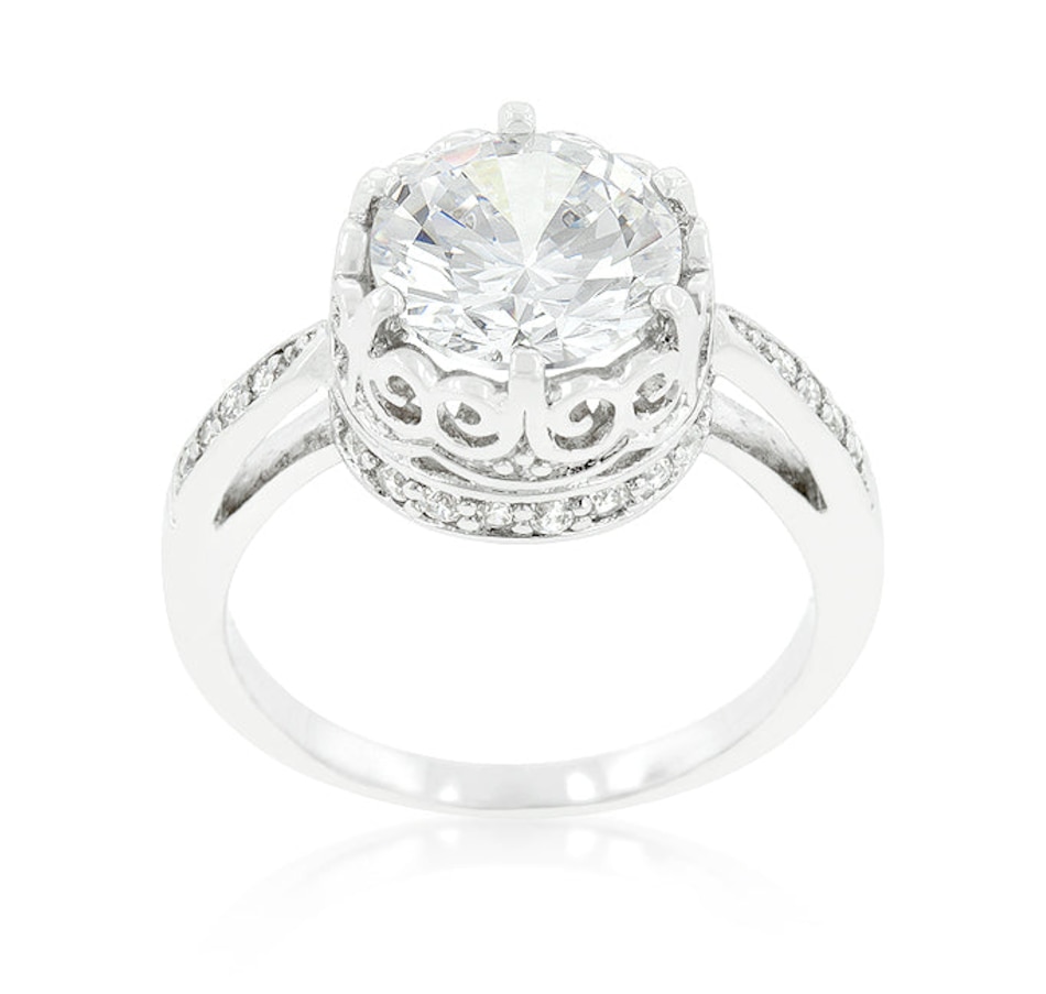 Feminine and elegant. Simple and sophisticated. Fashioned in an elegant cubic zirconia this ring is would be royally ado by any woman. Our genuine finish is achieved using an electroplating process that coats the item with heavy layers of a close cousin to platinum which gives our jewelry a platinum luster.