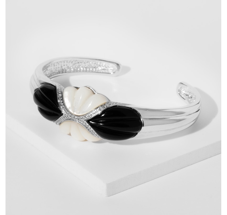 Roz Kwan Jewellery Sterling Silver Black Onyx and Mother of Pearl Cuff Bracelet