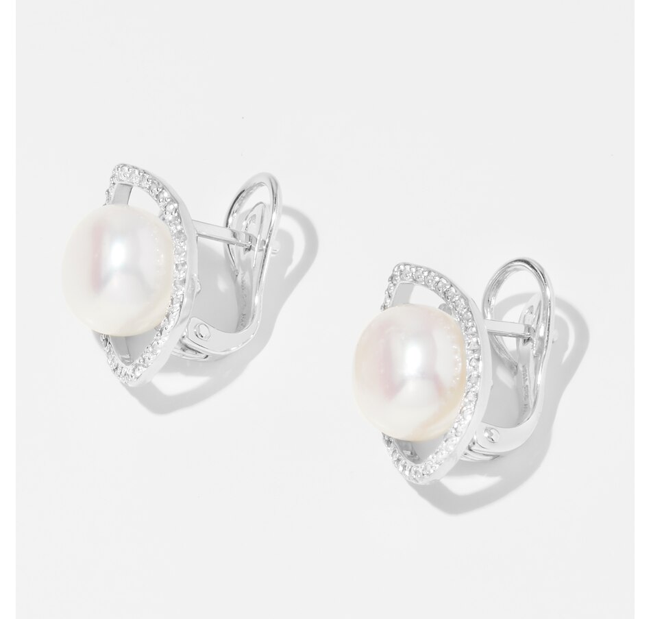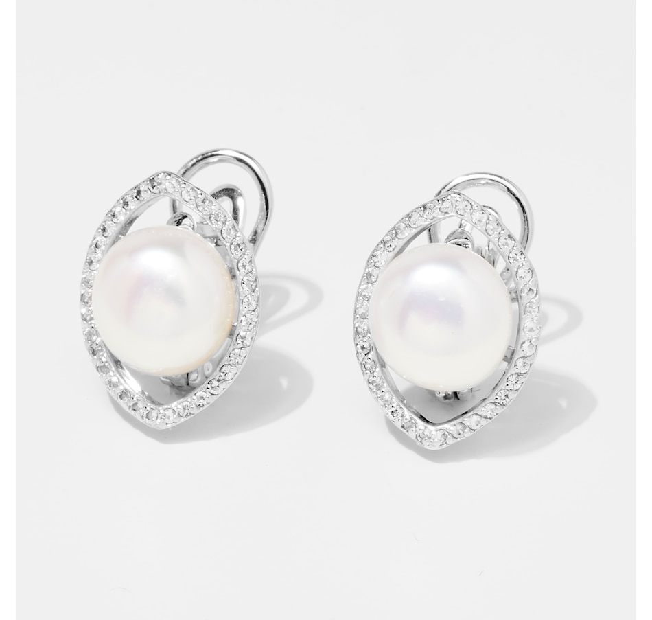 Roz Kwan Jewellery Sterling Silver Freshwater Pearl and White Topaz Omega Back Earrings