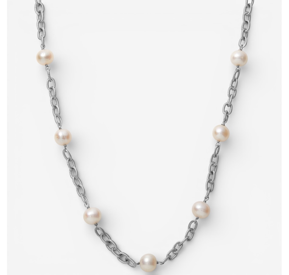 Roz Kwan Sterling Silver 10mm-11mm Oval White Freshwater Pearl Necklace